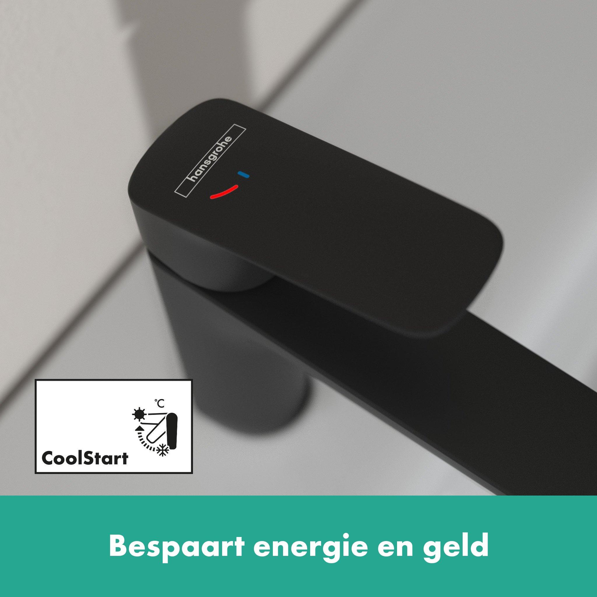 Avec la technologie CoolStart intégrée, vous commencez toujours avec de l'eau froide, ce qui permet d'économiser de l'énergie et vous aide à limiter consciemment votre consommation d'eau. Le débit maximal de 5 litres par minute garantit que vous consommez moins d'eau sans compromettre le confort. De plus, le mitigeur est équipé d'une cartouche céramique qui assure une longue durée de vie et une manipulation fluide. Grâce à la taxonomie de l'UE, ce mitigeur répond à des exigences strictes en matière de durabilité, ce qui signifie que vous choisissez en toute confiance une qualité qui est également bonne pour l'environnement.