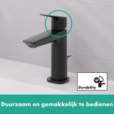 Le design de ce mitigeur est un équilibre parfait entre épuré et subtil. La poignée droite et le bec fixe avec une ComfortZone de 110 mm offrent un aspect moderne qui attire immédiatement l'attention. La couleur noire mate donne un aspect robuste et luxueux, qui confère à votre salle de bains une ambiance contemporaine et exclusive. Cela en fait un véritable point fort qui se combine facilement avec divers modèles de lavabos et styles de salle de bains. En choisissant ce mitigeur, vous ajoutez un élément stylé qui donne une mise à niveau à votre salle de bains sans dominer.