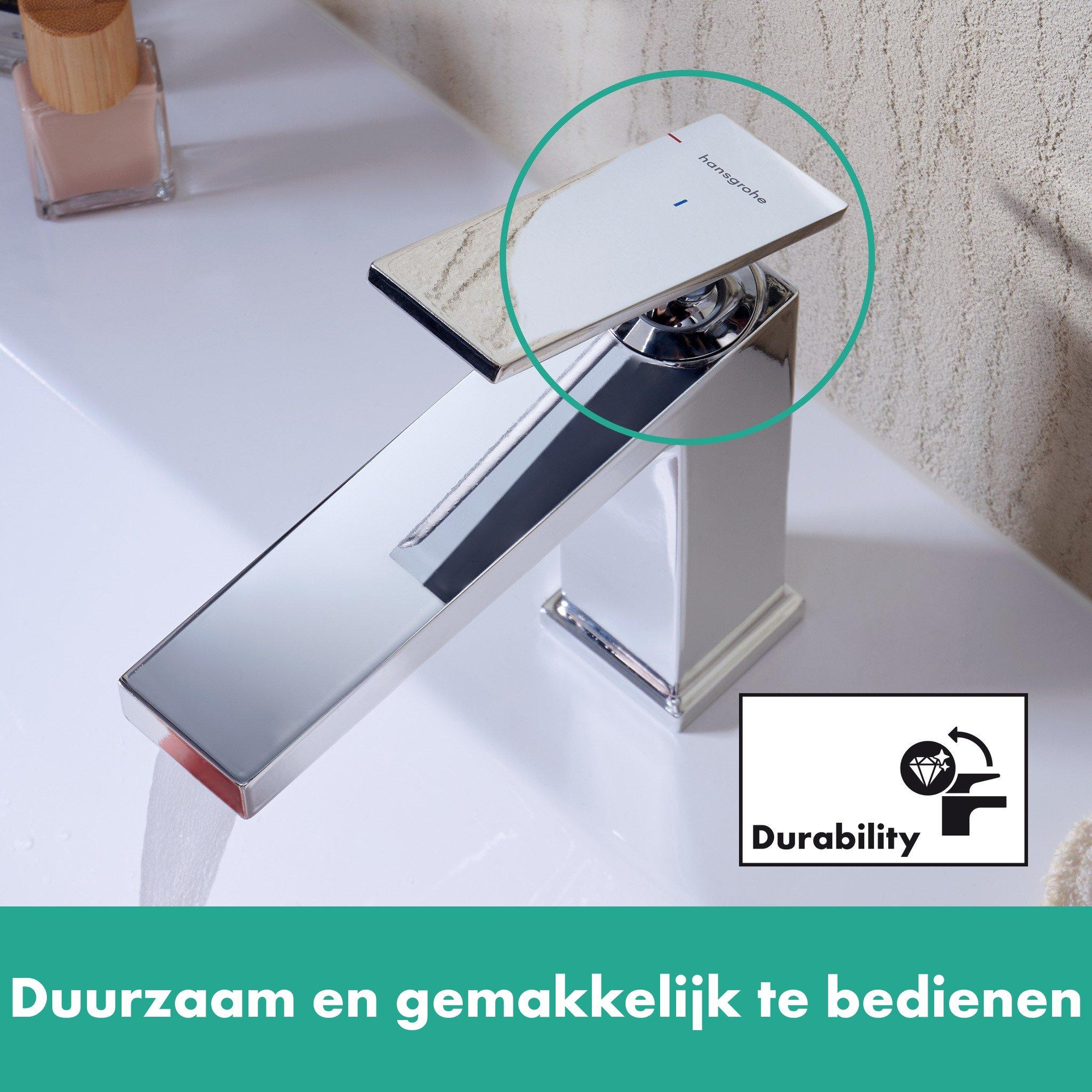 Avec la technologie innovante EcoSmart+, ce robinet consomme seulement 4 litres d'eau par minute, soit 20 % de moins que les robinets économes standards. Cela signifie que vous gérez non seulement l'eau de manière responsable, mais que vous économisez aussi de l'énergie grâce à la fonction CoolStart qui fournit de l'eau froide par défaut en position neutre du levier. La cartouche céramique de haute qualité garantit une longue durée de vie et une commande fluide sans fuites. De plus, la finition chromée robuste offre une protection optimale contre l'usure et la corrosion. Vous investissez ainsi dans un produit fiable qui dure des années et contribue à une salle de bains durable.