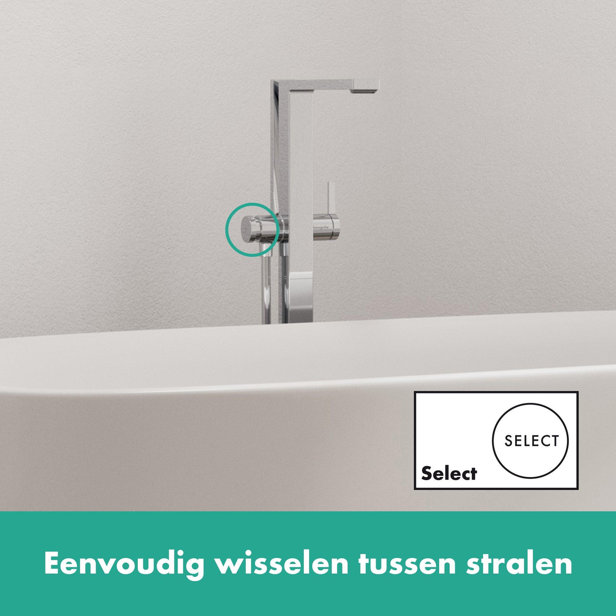 Le confort et la facilité d'utilisation sont au cœur de ce design. La technologie innovante AirPower enrichit le jet d'eau avec de l'air, offrant une expérience d'eau douce et pleine qui éclabousse moins et est agréable sur la peau. Avec le bouton Select pratique, vous passez facilement du bec de baignoire à la douchette à main, tandis que le retour automatique évite que votre salle de bains ne soit mouillée. De plus, la limitation de température réglable offre une sécurité supplémentaire, pour que vous n'ayez jamais d'eau trop chaude. Ce robinet combine ainsi luxe et avantages pratiques sans effort.