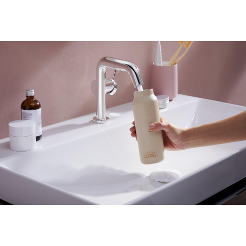 Le design de ce mitigeur lavabo est un équilibre parfait entre minimalisme et élégance. La finition chrome offre un aspect brillant et moderne qui s’harmonise sans effort avec divers styles de salle de bains. Grâce à son design puriste avec des lignes nettes et des formes arrondies, le robinet paraît intemporel et luxueux. Cela en fait non seulement un élément fonctionnel, mais aussi un ajout stylé qui donne un coup de neuf à votre salle de bains. Ainsi, vous profitez chaque jour d’une salle de bains soignée et accueillante.
