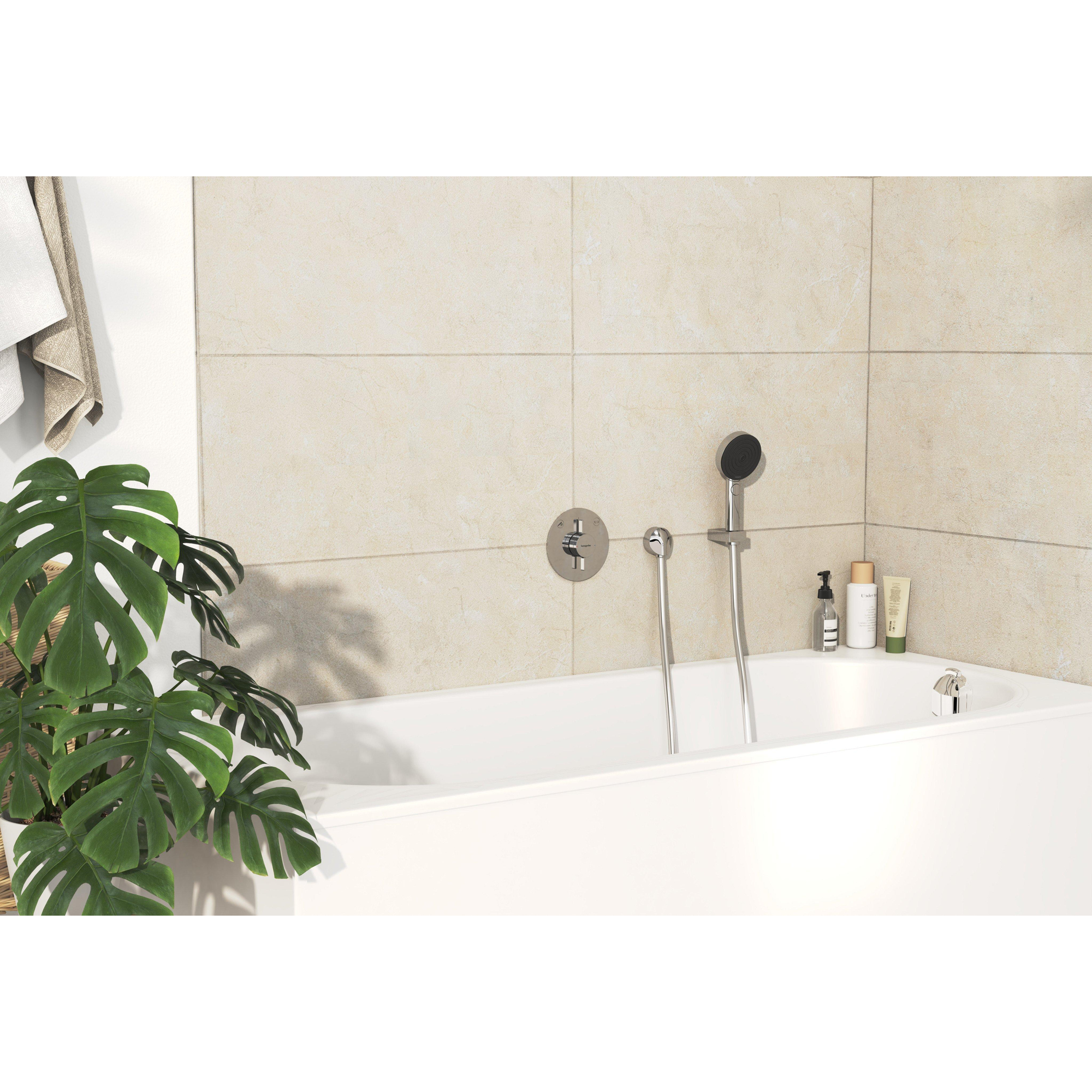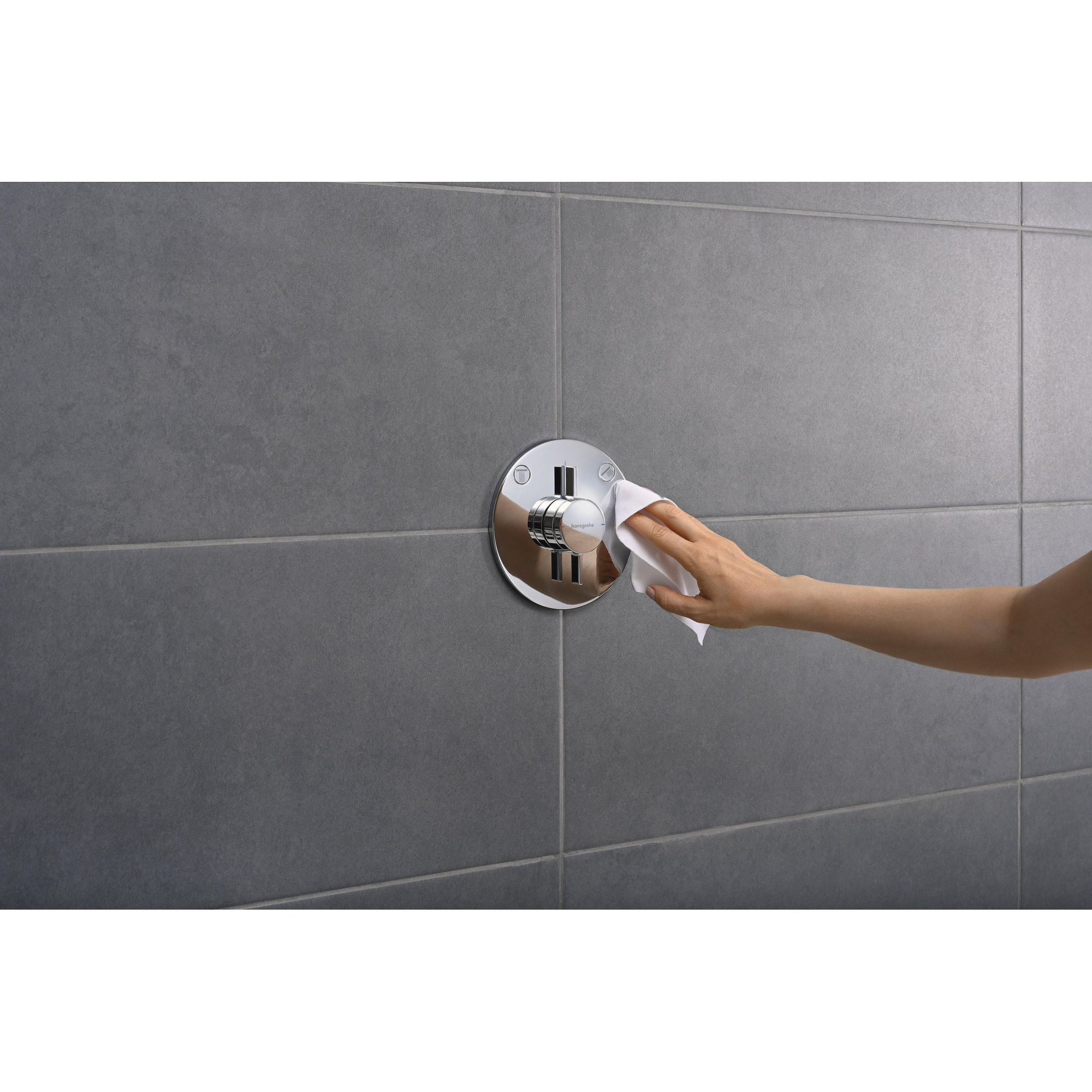 Avec ce robinet encastré, vous commandez facilement deux fonctions, telles que la douche de tête et la douchette à main, sans avoir à basculer. La poignée supérieure règle le débit d'eau et choisit entre les fonctions, tandis que la poignée inférieure règle précisément la température. Cela rend la douche plus simple et plus confortable que jamais. Le robinet convient à des pressions d'eau de 1 à 10 bars et fournit un débit puissant allant jusqu'à 29,5 litres par minute. De plus, la rosace murale est flexible pour un alignement facile lors de l'installation, garantissant une connexion parfaite. Ainsi, vous profitez d'une solution fiable et conviviale qui enrichit votre routine quotidienne.