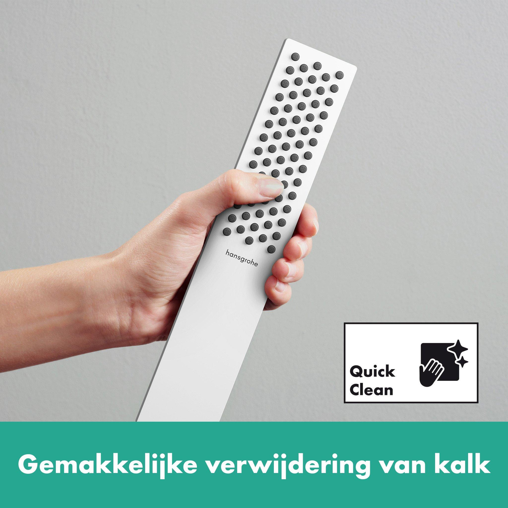 La boîte à flexible intégrée (sBox) assure un guidage silencieux et fluide du tuyau, ce qui permet de ranger proprement le tuyau de douche et vous offre plus de liberté de mouvement lors de la douche ou du lavage des cheveux. Avec un tuyau extensible de 1,45 mètre, vous bénéficiez d'un confort et d'une flexibilité supplémentaires. Le changement automatique entre le remplissage de la baignoire et la douchette rend l'utilisation simple et intuitive. De plus, le robinet est compatible avec différents dispositifs de débit, ce qui le rend polyvalent dans votre salle de bains.