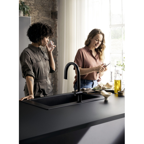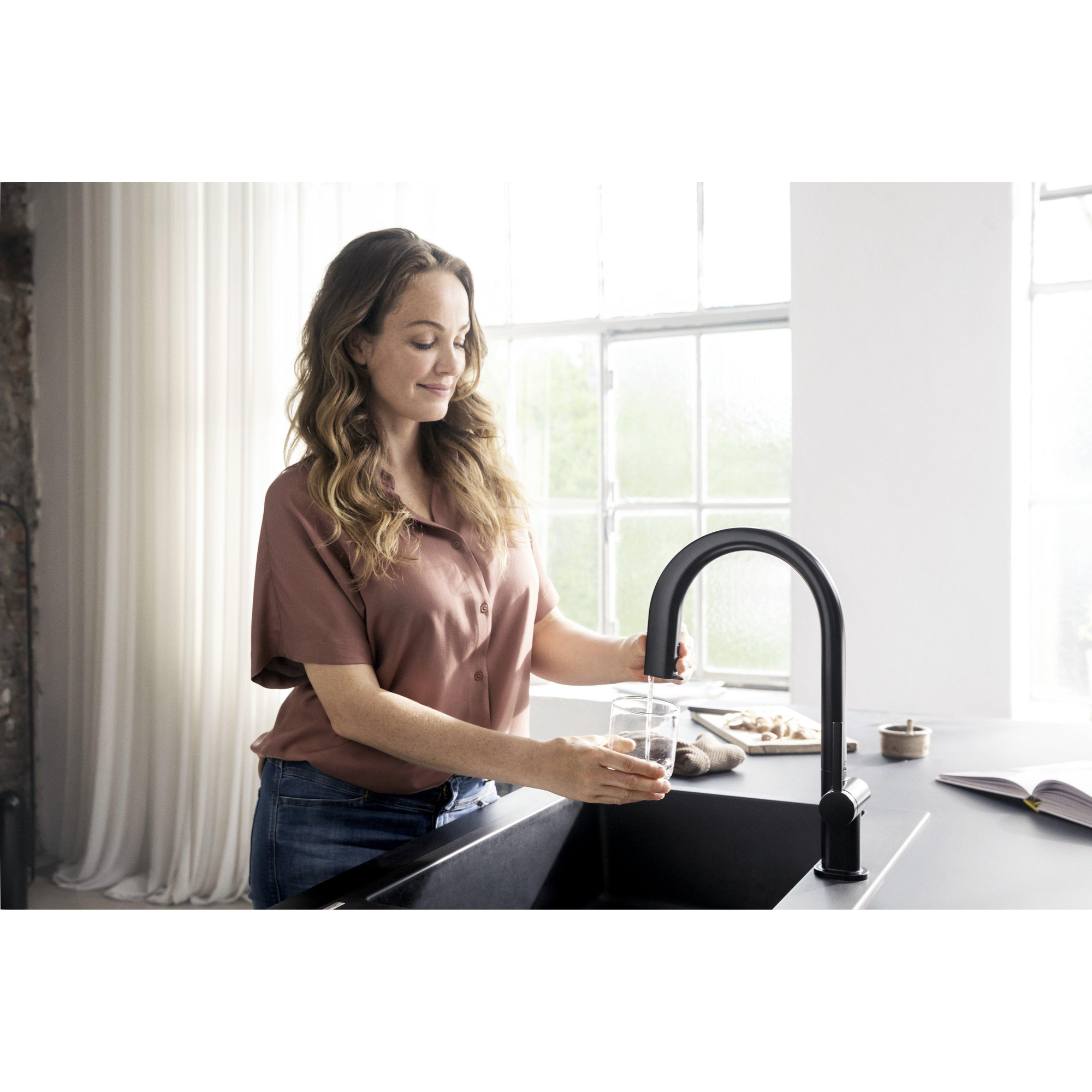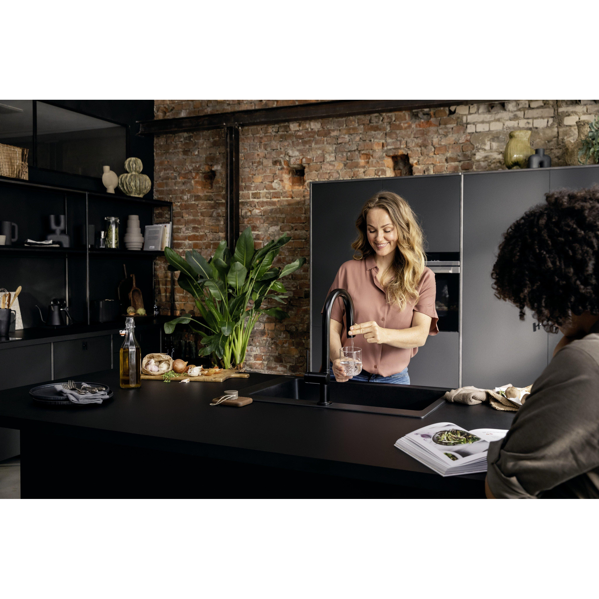 La finition noir mat confère à ce robinet une apparence contemporaine et luxueuse qui attire immédiatement l’attention. Le design épuré s’adapte parfaitement aux cuisines modernes et ajoute une touche raffinée sans dominer. Grâce à la couleur subtile et au profil minimaliste, le robinet devient un véritable point focal qui améliore votre cuisine. De plus, le matériau de haute qualité garantit que la couleur reste belle longtemps, même en cas d’utilisation intensive. Ainsi, vous profitez non seulement d’un produit fonctionnel, mais aussi d’un élément stylé qui complète votre cuisine.