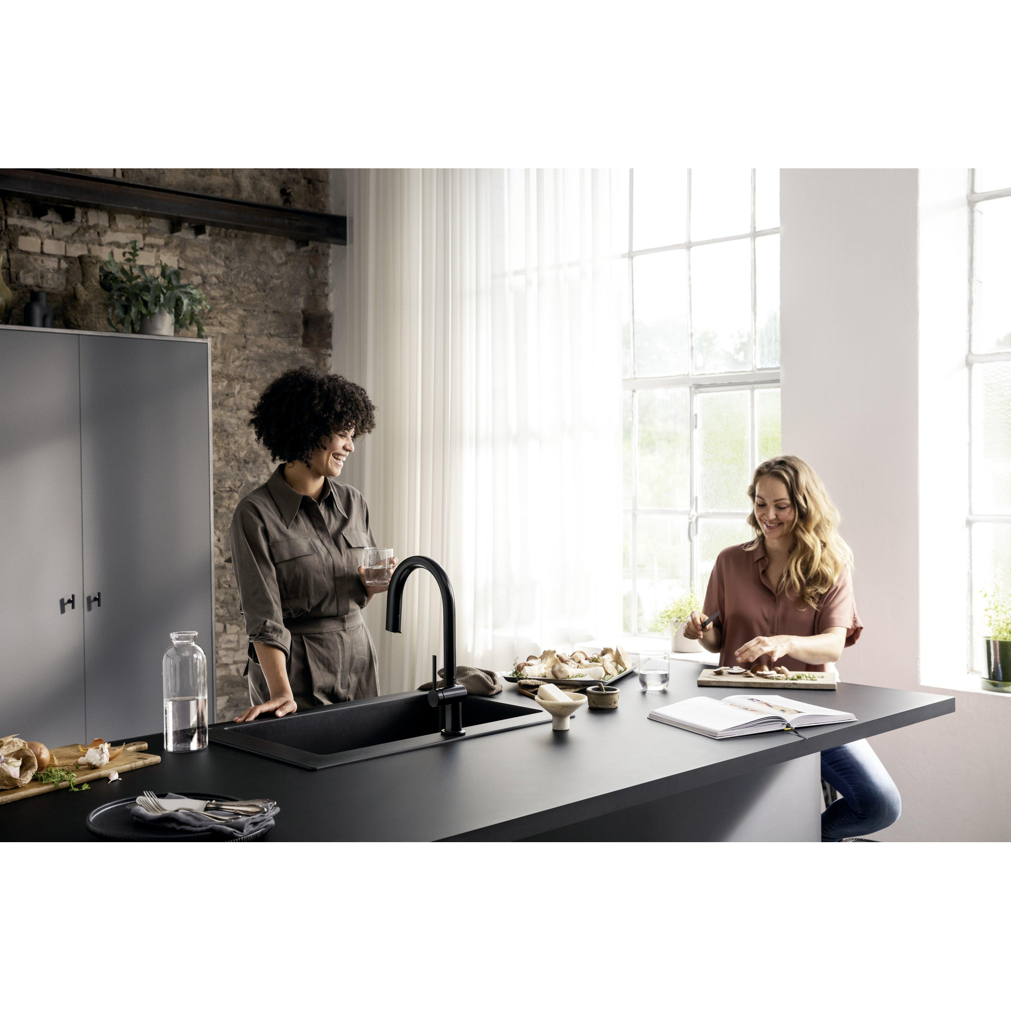 Hansgrohe Aqittura système de filtration mitigeur de cuisine 210 bec extractible 1jet noir mat