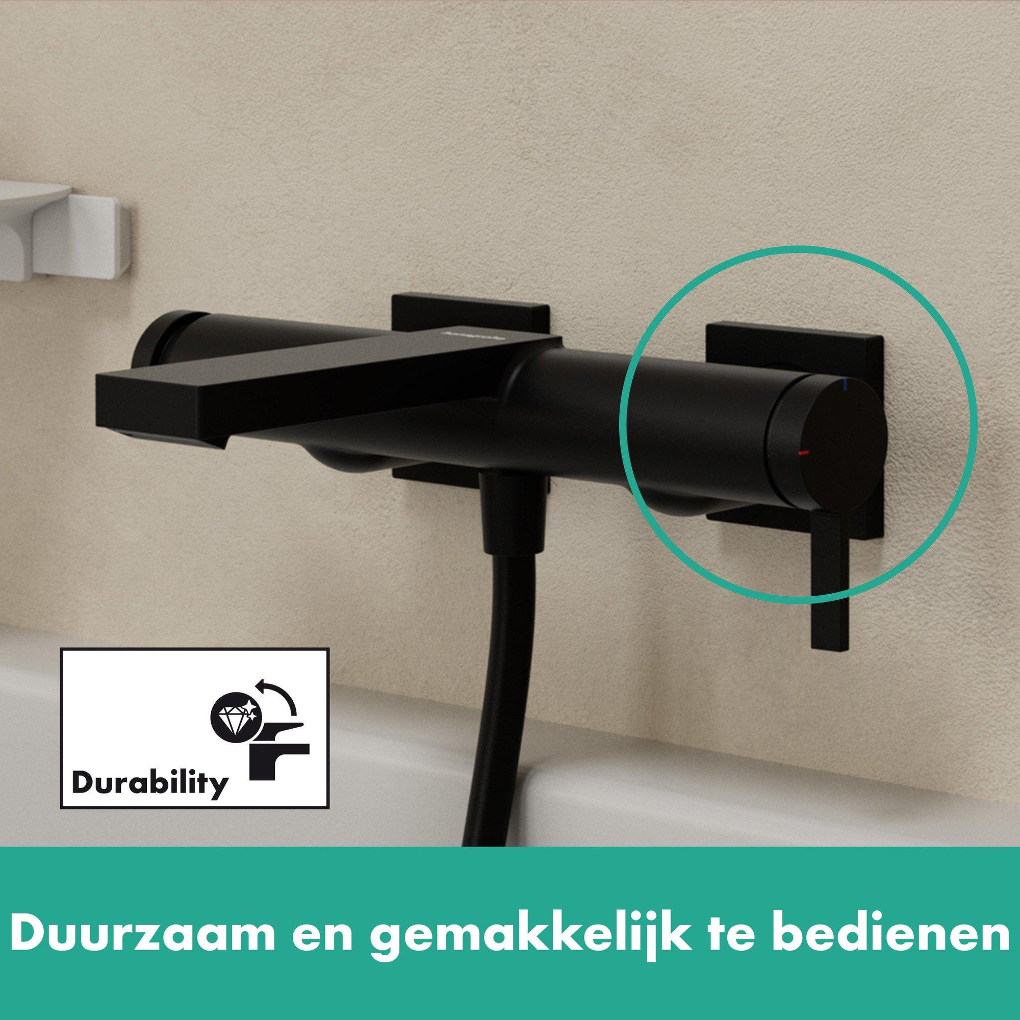Ce mitigeur bain est un exemple d'élégance intemporelle. La surface mat noir donne une touche robuste et moderne qui s'adapte parfaitement à divers styles de salle de bains, de l'industriel au minimaliste. Le design épuré et linéaire assure une apparence calme qui apporte paix et équilibre dans votre salle de bains. Grâce aux détails subtils et à la finition de haute qualité, votre salle de bains devient immédiatement beaucoup plus attrayante. Avec ce mitigeur, vous faites une déclaration de design puissante sans que cela devienne écrasant. Ainsi, vous profitez d'une salle de bains à la fois fonctionnelle et visuellement impressionnante.
