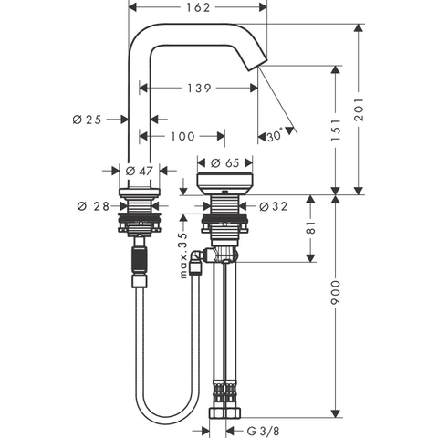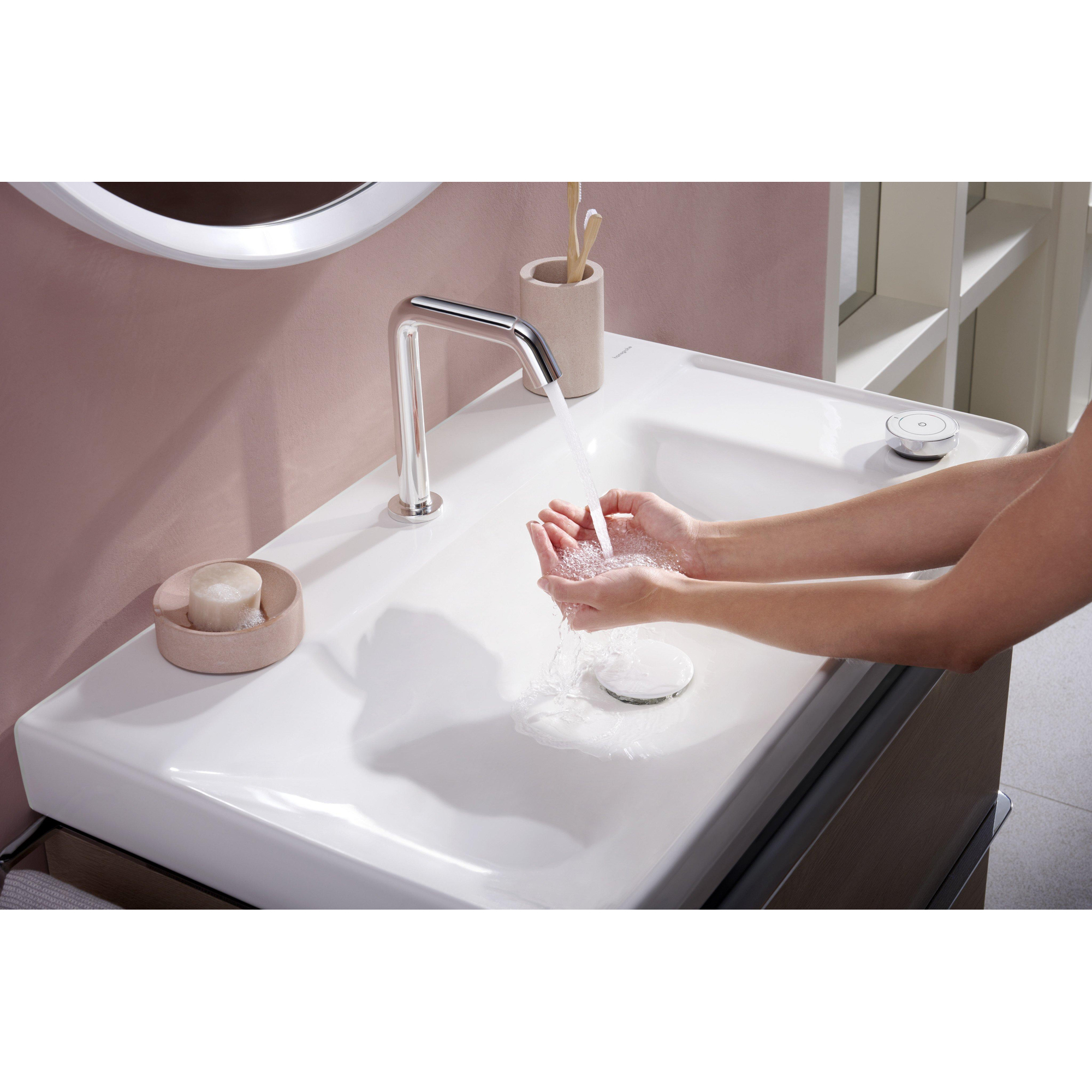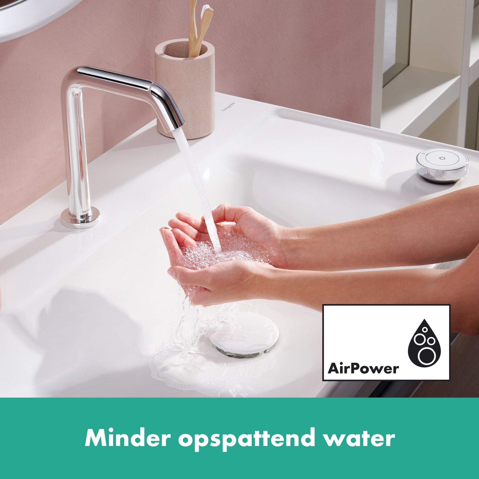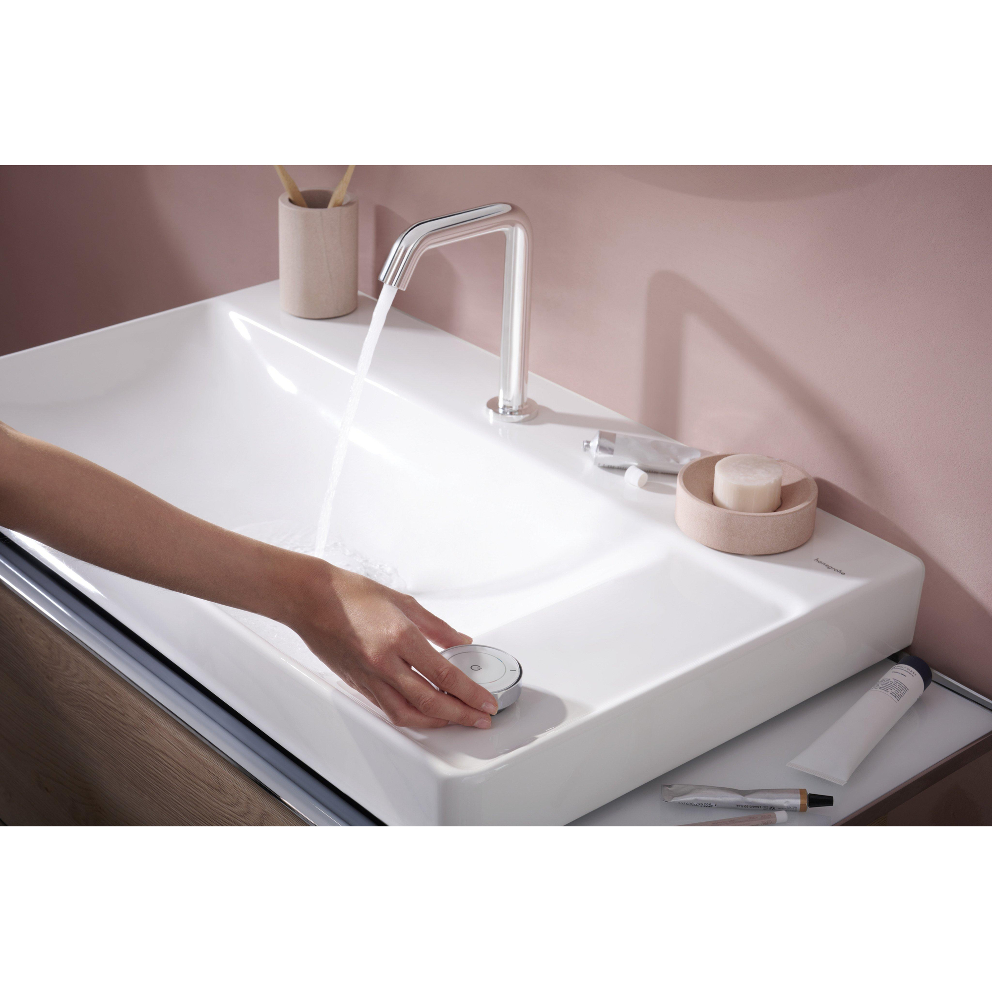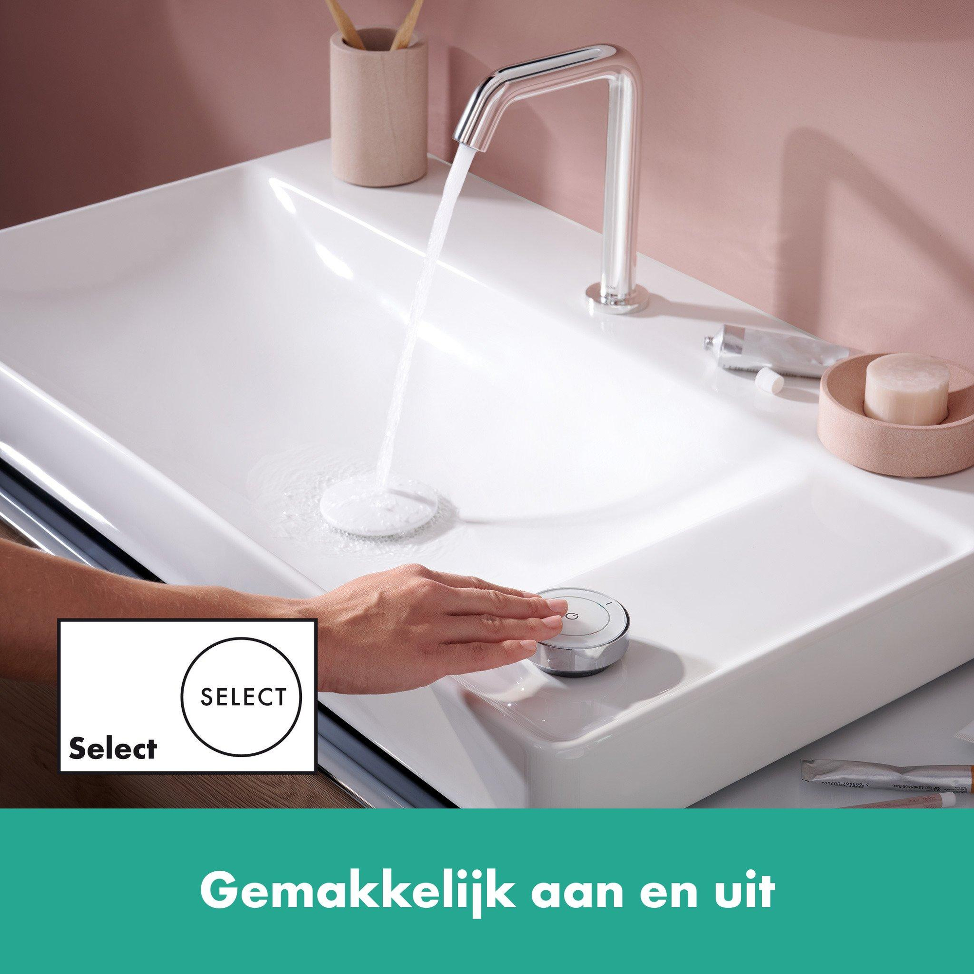 Ce robinet est conçu pour votre confort. L'espace généreux entre le bec et le lavabo vous offre plus de liberté de mouvement, rendant l'utilisation particulièrement confortable. Le bouton Select pratique permet de régler facilement et précisément l'eau et la température, tandis que la technologie EcoSmart+ limite la consommation d'eau à seulement 4 litres par minute sans que vous ne le remarquiez à l'usage. Grâce à l'aération du jet d'eau, vous profitez d'un flux plein et doux qui éclabousse moins et est agréable au toucher. La bonde à ouverture permanente fournie évite également les débordements, ce qui apporte une tranquillité supplémentaire.