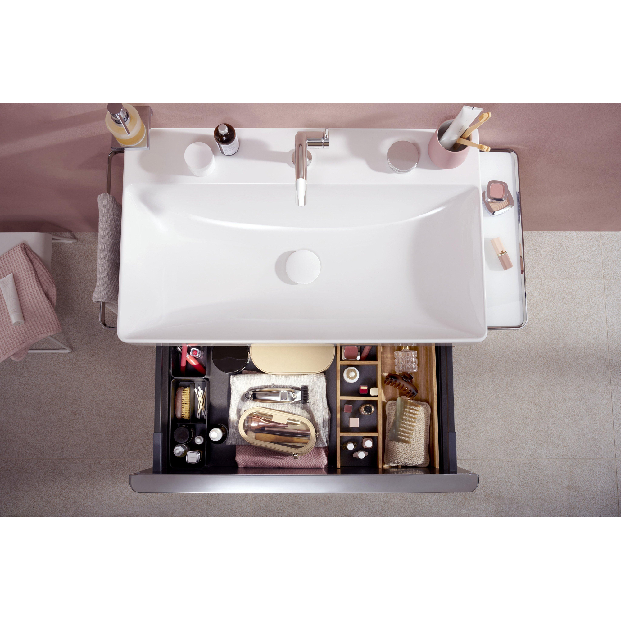 Ce robinet se distingue immédiatement par son design intemporel et minimaliste. La finition chrome offre un aspect brillant et haut de gamme qui s'intègre sans effort dans toute salle de bains moderne. Les courbes subtiles et les lignes épurées assurent un équilibre élégant entre forme et fonction. Ainsi, votre lavabo devient un véritable point focal, dégageant style et classe. Le design n'est pas seulement beau, il est aussi réfléchi : la poignée latérale évite les gouttes d'eau et les traces de calcaire, ce qui permet au robinet de rester beau plus longtemps et demande moins d'entretien.