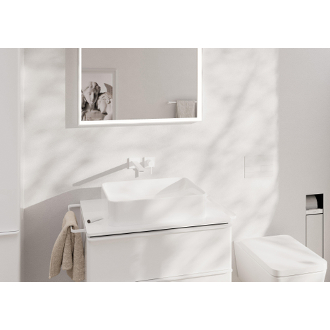 Ce robinet lavabo se distingue par son design puriste et moderne. La couleur blanche mate offre un aspect intemporel qui s’adapte aisément à différents styles de salle de bains, du minimaliste et épuré au chaleureux et naturel. Grâce à la fixation murale, la surface de votre lavabo reste libre et ordonnée, contribuant à une atmosphère calme et rangée. Le design n’est pas seulement esthétique, il est aussi réfléchi : la commande peut être placée à gauche ou à droite du bec selon vos préférences d’utilisation. Vous profitez ainsi d’une ambiance exclusive qui donne ce petit plus à votre salle de bains.