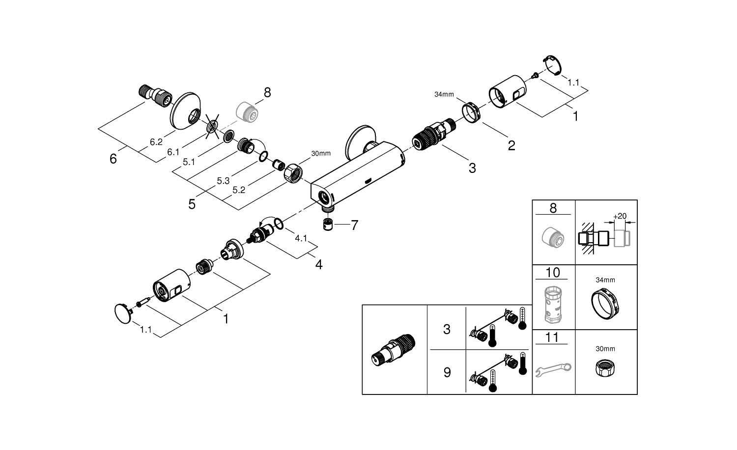GROHE SafeStop Pluslimiteur de température optionnel à 43°C inclus