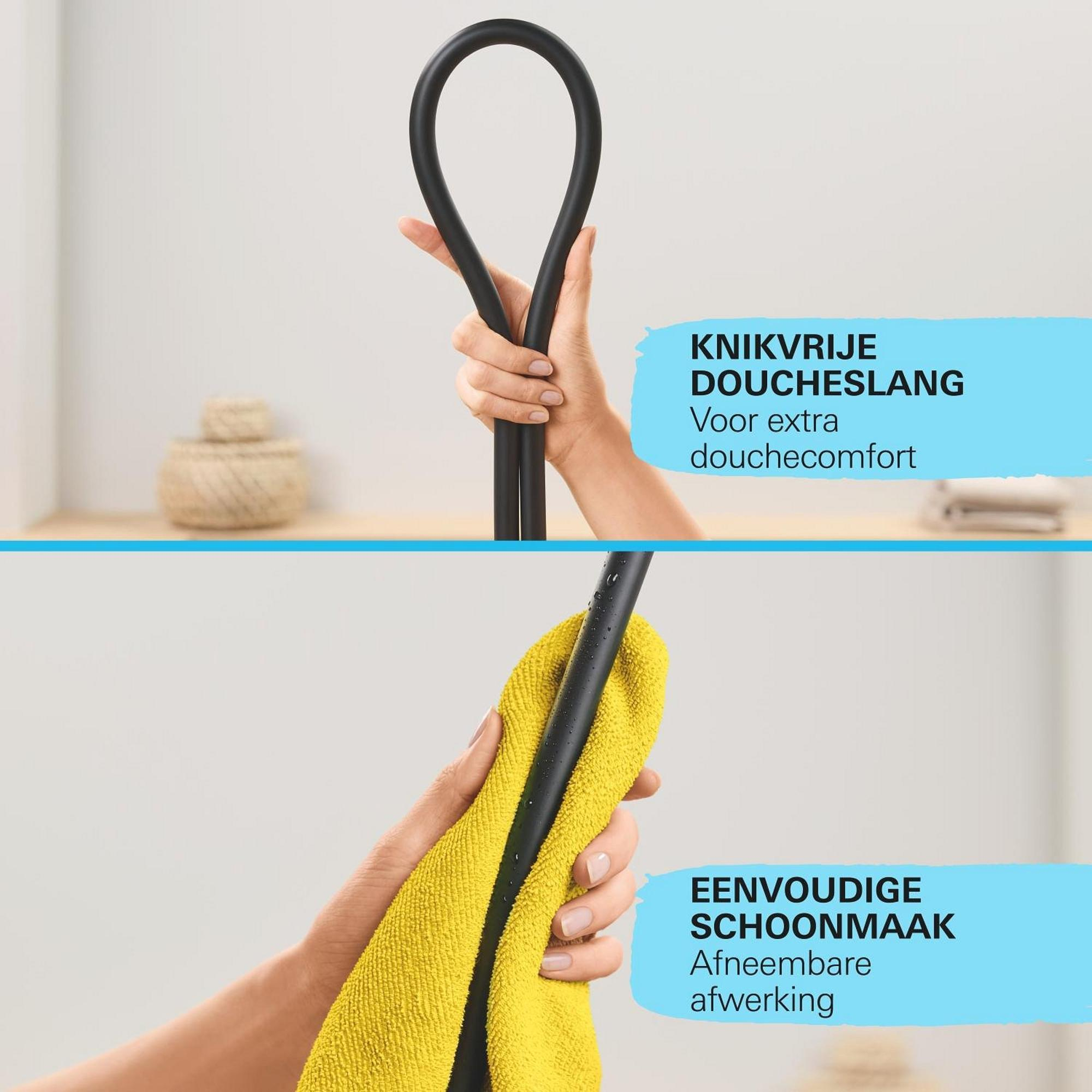 Le flexible est conçu pour offrir une facilité d'utilisation optimale. Les raccords universels rendent le montage simple et rapide, sans que vous ayez besoin d'outils. Les écrous GROHE ProGrip avec surface rainurée assurent une prise en main ferme, de sorte que vous pouvez visser et dévisser le flexible sans effort. La surface lisse est facile à nettoyer et ne s'abîme pas au contact des parois de douche ou de la baignoire. Grâce à la conception anti-torsion, vous profitez d'un débit d'eau continu sans interruption, ce qui rend la douche encore plus agréable.