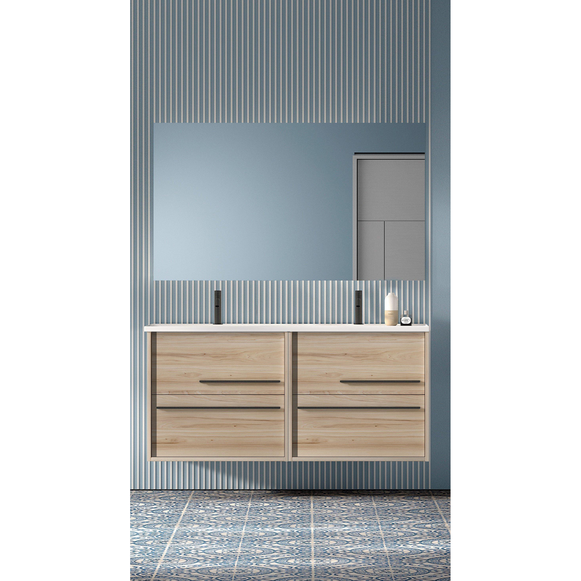 Saniclass Prime Essential Ensemble meuble de salle de bains - 120x55x46cm - 2 vasques ovales blanches - 2 trous de robinet - 4 tiroirs - miroir rectangulaire - chêne clair