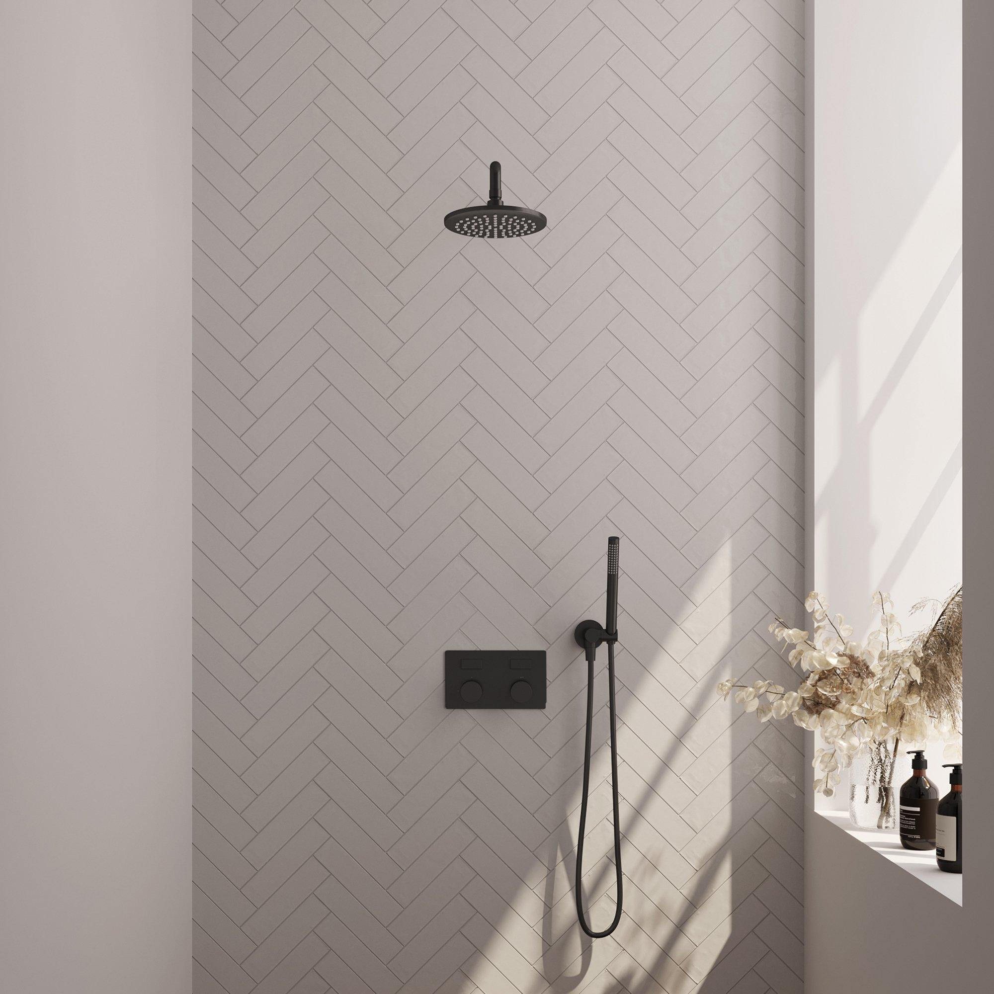 Outre sa valeur esthétique, cette douche de pluie est également très fonctionnelle. Avec une pomme de douche de 20cm et une douchette barre pratique, vous pouvez choisir entre une douche de pluie revigorante ou un jet d'eau ciblé. La régulation thermostatique garantit une température de l'eau constante et le flexible de douche ainsi que le coude de raccordement mural rendent l'installation simple et pratique.