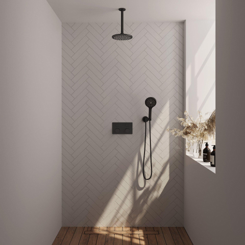 Cette douche de pluie se distingue par son apparence élégante et son design minimaliste. La finition noire apporte une touche contemporaine à toute salle de bains, tandis que les lignes épurées et la commande par boutons-poussoirs assurent une expérience d'utilisation moderne et sans effort.