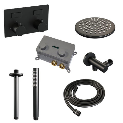 BRAUER Black Edition Douche de pluie thermostatique encastrée - boutons-poussoirs - SET 53 - douche de tête 20 cm - bras de plafond - douchette à main barre - flexible de douche - coude de raccordement mural - noir mat