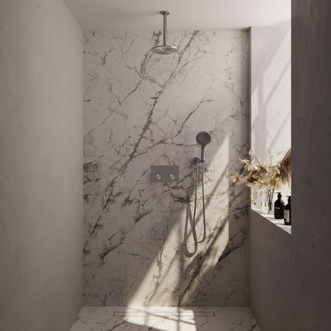 La BRAUER Brushed Carving Douche de pluie thermostatique encastrée dégage de l'élégance avec sa finition PVD en acier inoxydable brossé. Le design moderne et épuré s'harmonise parfaitement avec un style de salle de bains contemporain. La combinaison de la pomme de douche 20cm et du bras de plafond donne une apparence luxueuse à l'espace de douche, tandis que les boutons-poussoirs et la régulation thermostatique assurent un confort et une facilité d'utilisation ultimes.