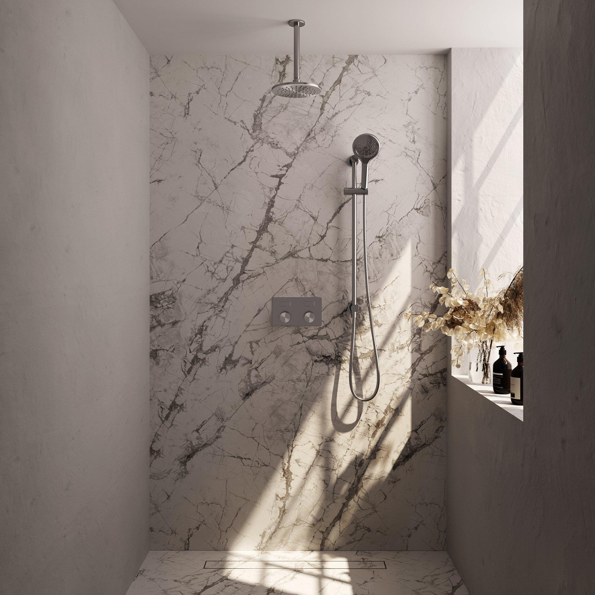 En plus de son superbe aspect, la douche de pluie BRAUER est également très fonctionnelle. Grâce au contrôle thermostatique et aux boutons-poussoirs pour une utilisation simple, vous pouvez ajuster sans effort la température et le débit d'eau. La pomme de douche 20cm et la douchette 3 jets offrent une expérience de douche personnalisée, tandis que la barre de douche intégrée et le flexible de douche assurent flexibilité et confort.