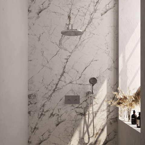 La BRAUER Chrome Carving douche de pluie thermostatique encastrée respire le style et l'élégance. La finition chromée ajoute une touche de luxe à votre salle de bains. Les lignes épurées et l'apparence moderne font de cette douche de pluie un véritable point de mire dans chaque salle de bains. Le design est soigneusement conçu pour être à la fois fonctionnel et esthétiquement attrayant.