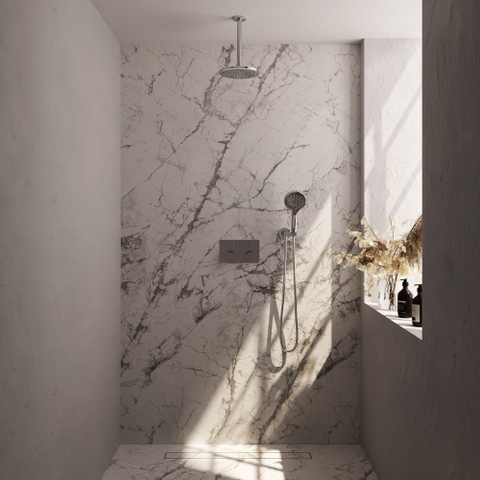 Ce système de douche est conçu avec une touche moderne qui s'harmonise parfaitement avec les styles de salles de bains contemporains. Les lignes épurées et l'allure contemporaine assurent un look frais et tendance. Les boutons-poussoirs et la régulation thermostatique ajoutent un élément avancé à la fonctionnalité de la douche, ce qui maximise la facilité d'utilisation.