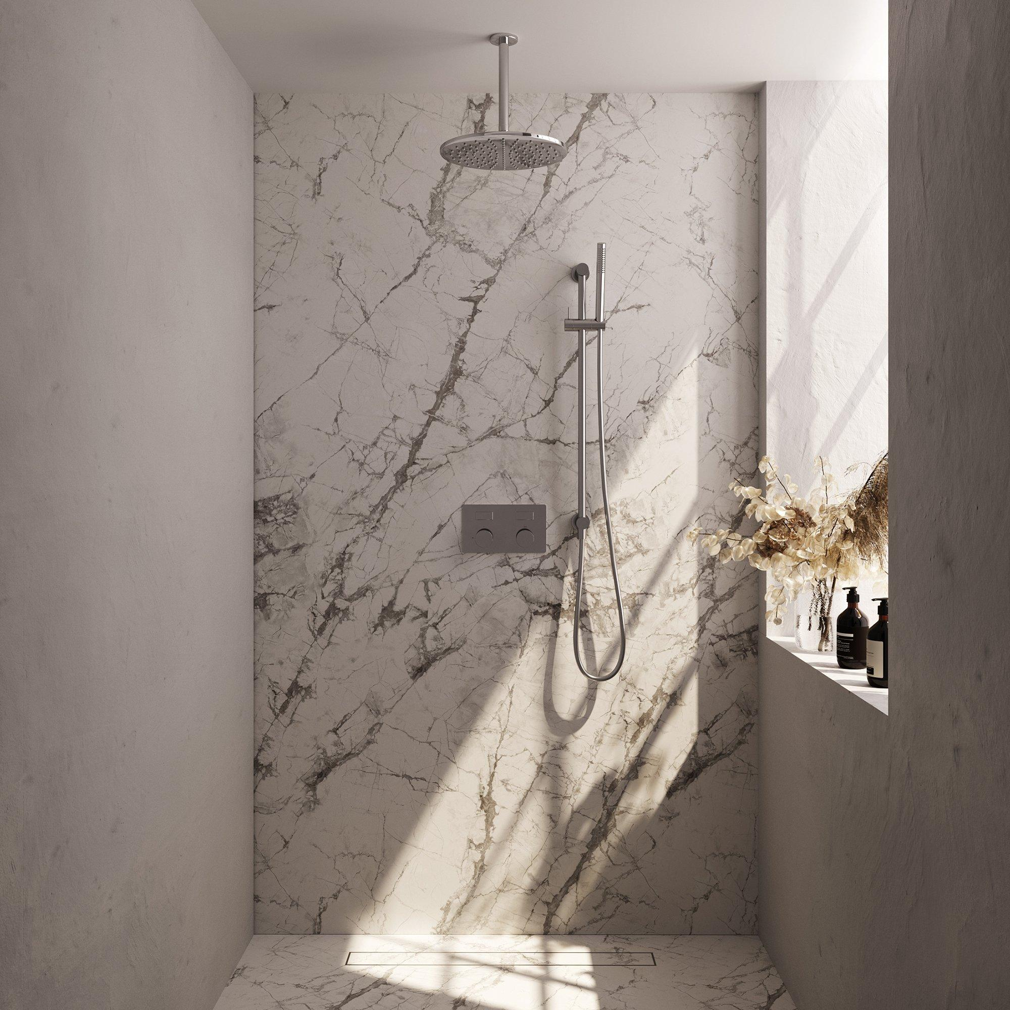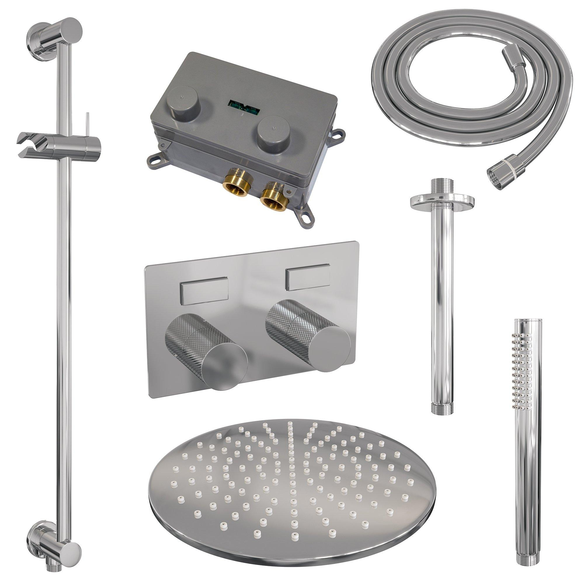 BRAUER Chrome Carving Douche de pluie thermostatique encastrée - boutons-poussoirs - SET 66 - pomme de douche 30cm - bras de plafond - douchette barre - flexible de douche - barre de douche intégrée - chrome