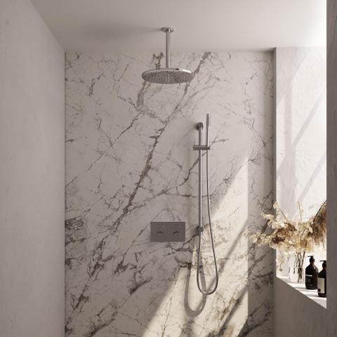 La BRAUER Chrome Carving douche de pluie thermostatique encastrée respire l'élégance et le style. La finition chromée donne un aspect luxueux à la douche, tandis que le design moderne s'intègre parfaitement dans une salle de bains contemporaine. Les boutons-poussoirs assurent une commande sans effort et ajoutent une touche de raffinement à l'ensemble.