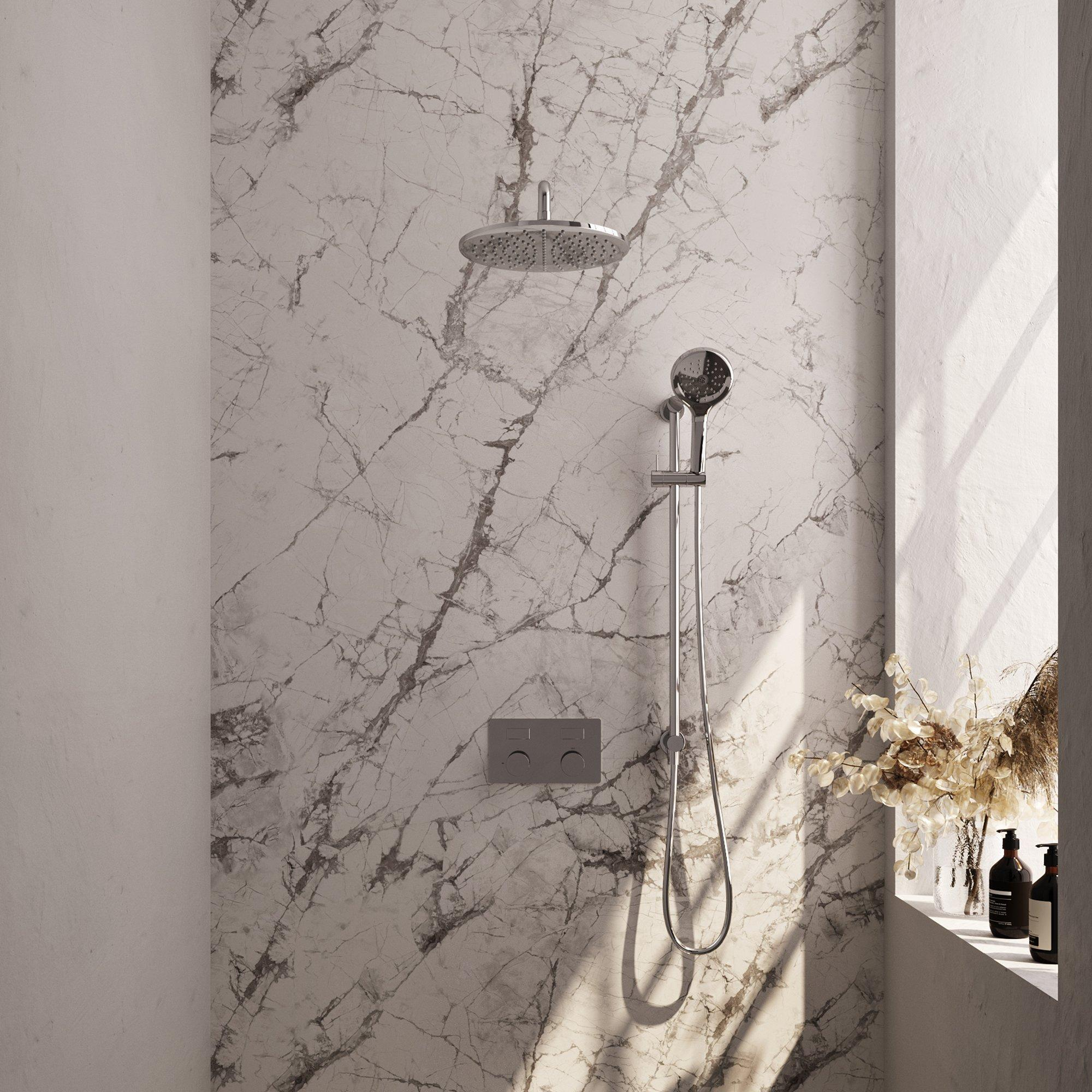 Grâce à la régulation thermostatique et aux différents réglages, cette douche de pluie offre un confort ultime pendant la douche. La pomme de douche 30cm assure une répartition uniforme de l’eau, tandis que la douchette 3 jets est adaptable à vos préférences. La barre de douche intégrée permet de placer facilement la douchette à la hauteur souhaitée, rendant la douche confortable et relaxante.
