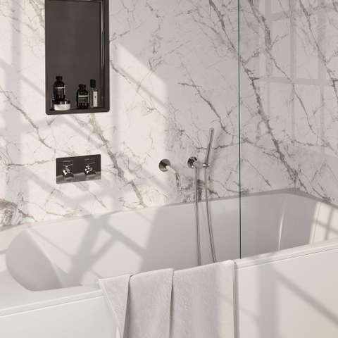 Le mitigeur de bain encastré thermostatique BRAUER Chrome Edition est un magnifique ajout à toute salle de bains. Avec sa finition chromée épurée et son design moderne, ce mitigeur de bain respire le luxe et l'élégance. Les boutons-poussoirs assurent une commande simple et la douchette barre et le flexible de douche fournis offrent un confort ultime pendant la douche. Le coude mural garantit une installation sans raccord apparent et complète cet ensemble. Profitez d'une expérience de douche relaxante avec ce mitigeur de bain de haute qualité de BRAUER.