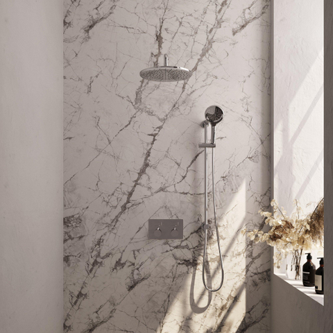 Si vous rêvez d’une douche à l’italienne luxueuse avec une véritable allure de spa, cet ensemble de douche de pluie encastré complet est un choix particulièrement judicieux. La généreuse pomme de douche principale procure une pluie bienfaisante, tandis que la douchette à main pratique vous offre juste ce petit plus de flexibilité pour l’usage quotidien, comme rincer les cheveux ou rincer la paroi de douche. Grâce au mitigeur thermostatique encastré épuré avec boutons-poussoirs, vous gardez l’espace de douche calme et minimaliste, idéal pour les salles de bains modernes et design, mais aussi pour une salle de bains familiale intemporelle et aux finitions nettes. La finition chromée s’accorde facilement avec les robinetteries de meubles de salle de bains et les accessoires les plus utilisés, de sorte que vous créez aisément un ensemble harmonieux. Si vous recherchez le confort, la sécurité et un look dégagé dans la douche, cet ensemble s’intègre parfaitement à votre nouveau projet de salle de bains.