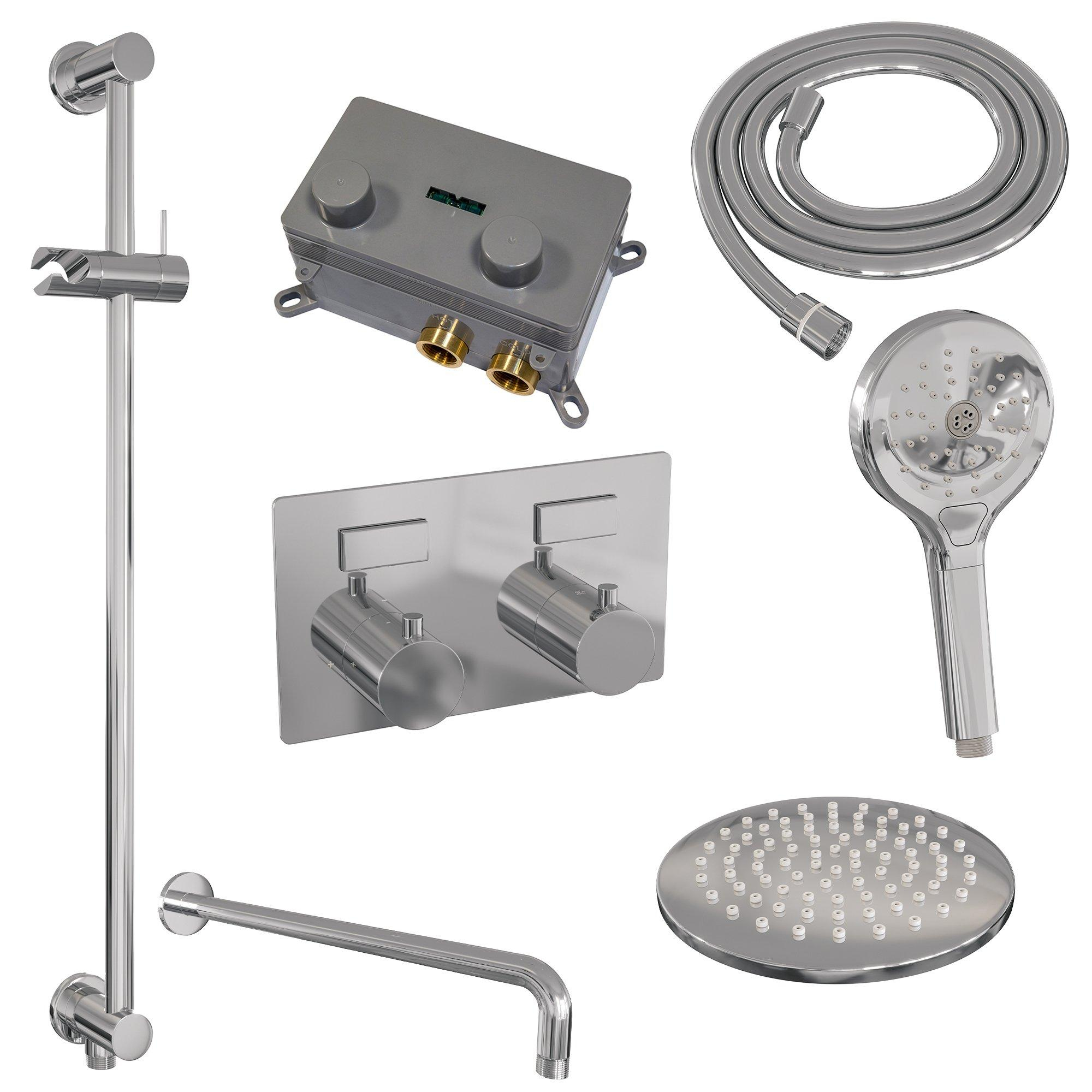 Brauer Chrome Edition douche pluie thermostatique encastrée set de boutons 69 20cm douche de tête bras mural courbé 3 positions douchette à main flexible de douche barre coulissante intégrée chrome