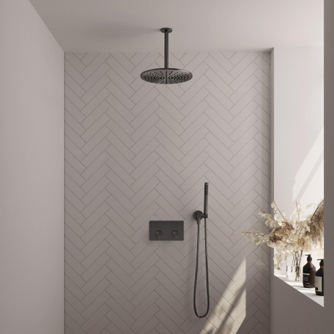 Cette douche de pluie encastrée allie fonctionnalité et design contemporain. Les lignes épurées et la finition gunmetal s'accordent parfaitement avec les salles de bains modernes. Le bras de plafond assure une intégration fluide dans le plafond, donnant à la douche de pluie un aspect minimaliste. Le flexible de douche et le coude de raccordement mural offrent un confort supplémentaire et facilitent l'installation. Avec la BRAUER gunmetal Carving Douche de pluie thermostatique encastrée, vous apportez un élément de design moderne chez vous.
