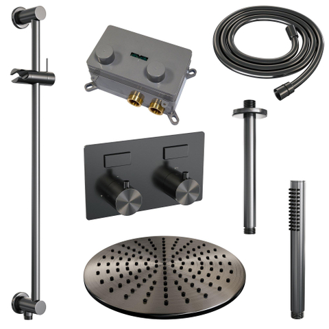 BRAUER gunmetal Edition Douche de pluie thermostatique encastrée - boutons-poussoirs - SET 66 - pomme de douche 30cm - bras de plafond - douchette barre - flexible de douche - barre de douche intégrée - gunmetal brossé PVD