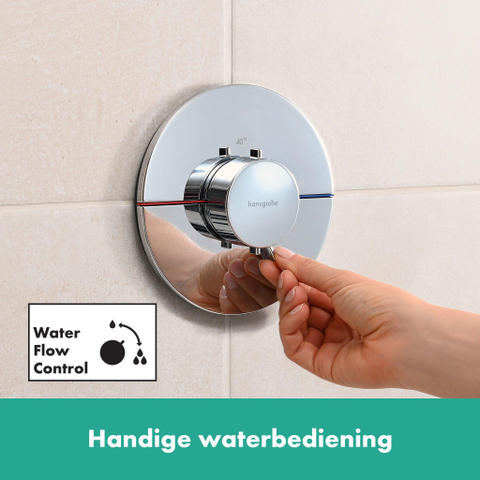 La sécurité est primordiale avec ce produit. Le thermostat est équipé d’un SafetyStop, ce qui signifie que l’eau chaude ne sort qu’après avoir appuyé consciemment sur un bouton. Cela évite les brûlures désagréables, ce qui est particulièrement important pour les familles avec enfants ou personnes âgées. De plus, le thermostat maintient la température constante, même en cas de fluctuations de l’alimentation en eau. Vous profitez ainsi toujours d’une douche stable et sûre sans surprises.
