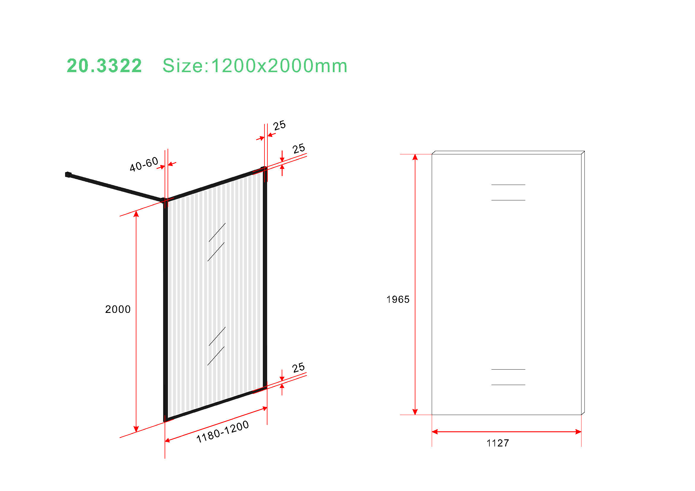 Les dimensions généreuses de 1200 x 2000 mm garantissent une entrée confortable et une liberté de mouvement suffisante pendant la douche. Le verre de sécurité de 8 mm d'épaisseur offre non seulement une apparence robuste, mais garantit également une sécurité optimale. Le revêtement nano nervuré sur le verre empêche les gouttes d'eau et les résidus de savon de s'accrocher, ce qui réduit la fréquence de nettoyage et permet à votre douche de rester fraîche plus longtemps. Cela rend l'utilisation quotidienne beaucoup plus agréable et facile à entretenir.Design épuré avec une touche noire mate