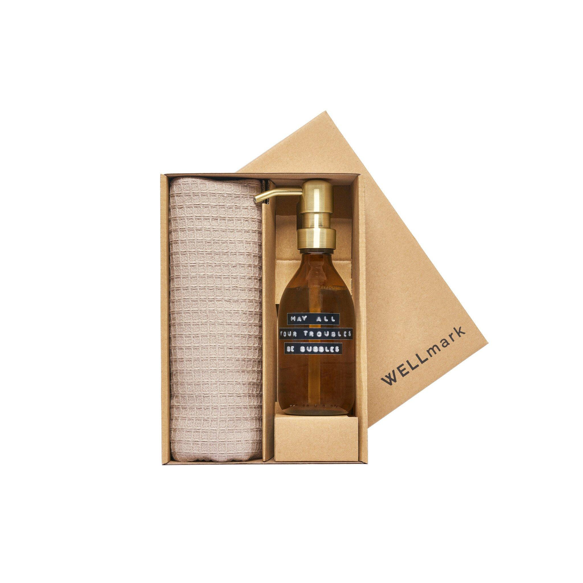Wellmark giftset - savon liquide pour les mains 250ml - torchon 50x70cm beige