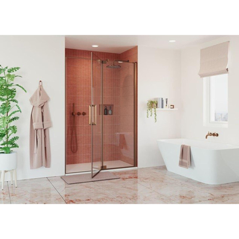 Avec cette solution de douche élégante, vous bénéficiez d’une entrée spacieuse et ouverte dans votre salle de bains sans faire de compromis sur le confort ou l’esthétique. Grâce à la combinaison d’une large porte pivotante avec un panneau fixe en ligne, ce produit est idéal pour les configurations de douche droites le long du mur, par exemple dans une douche à l’italienne moderne ou une niche de douche luxueuse. Le verre transparent laisse passer au maximum la lumière du jour, de sorte que même une salle de bains compacte semble immédiatement plus grande. Les profilés et détails bronze brossé apportent une touche chaleureuse et stylée qui se marie à merveille avec des tendances populaires comme le marbre, l’effet béton et les accents en bois. Si vous recherchez une paroi de douche haut de gamme qui offre à la fois un look épuré et une grande praticité au quotidien, c’est un excellent choix pour une salle de bains durable et tournée vers l’avenir.