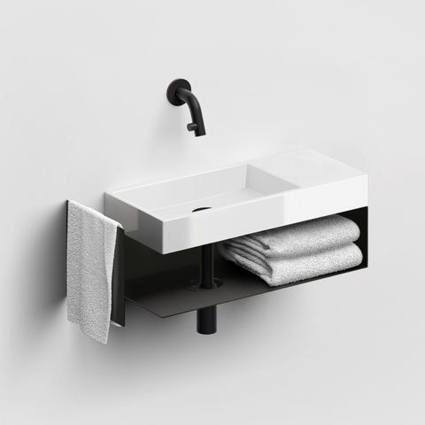 Clou Mini Wash Me Meuble ouvert - 53x19x17.5cm - droite - avec porte-serviettes - noir