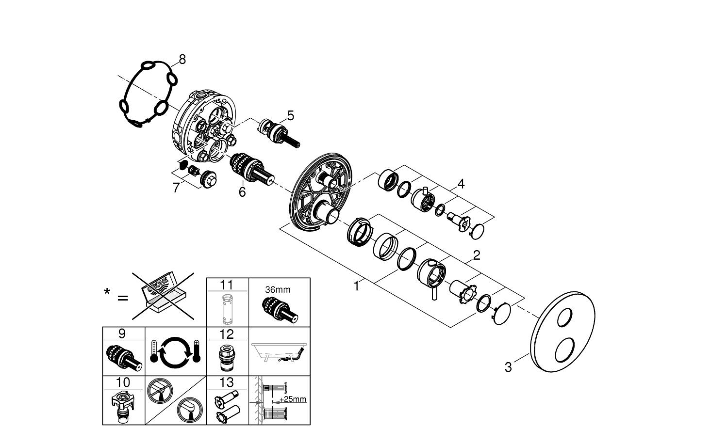 GROHE SafeStop Pluslimiteur de température optionnel à 43°C ou 46°C inclus