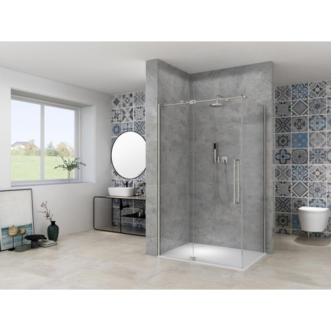 Van Rijn Products ST08 Paroi fixe 885-905 x 2000mm 8 mm Verre transparent incl. traitement du verre Profil mural en inox