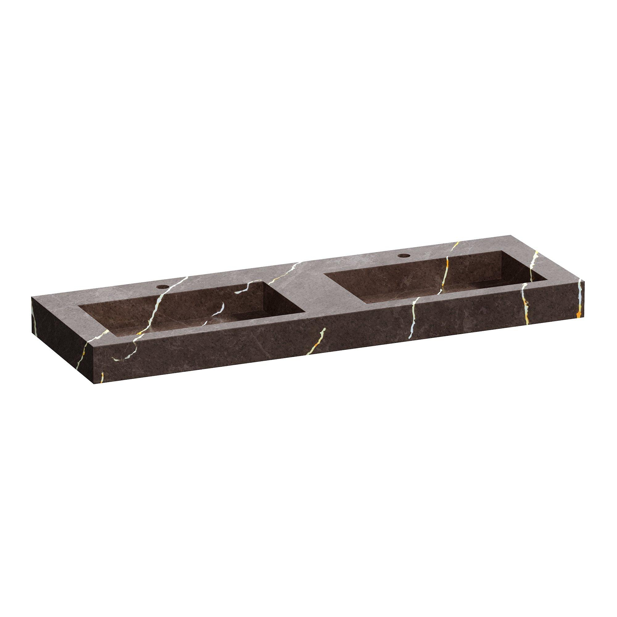 BRAUER Artificial Marble lavabo pour meuble - 140x46x10 - Sans trop-plein - 2 cuves - 2 trous de robinet - composite - Copper Brown