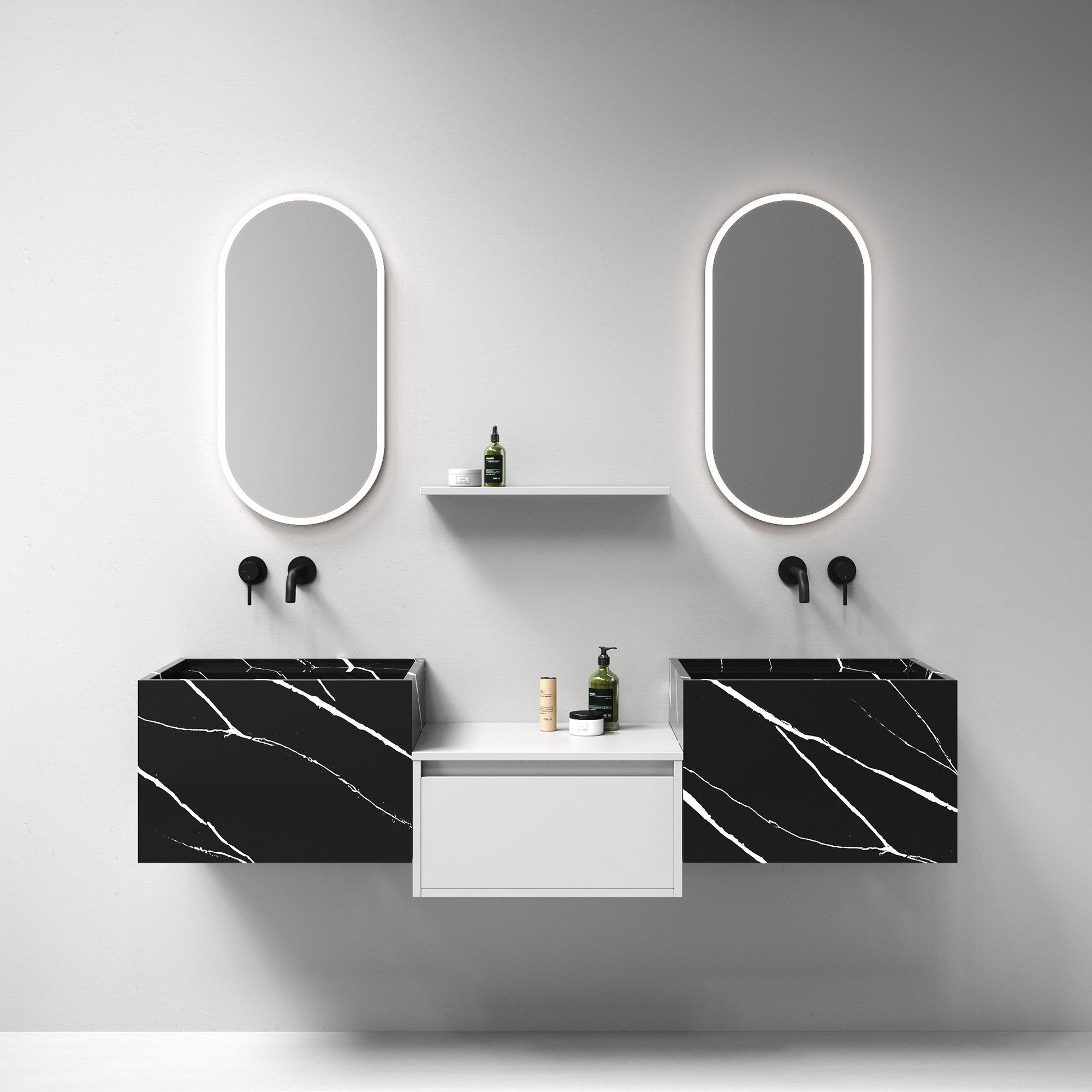 BRAUER Nova lavabo - 60x46x40cm - incl. consoles de fixation invisibles - 1 cuve - 1 trou de robinet - composite - aspect marbre - Nero Marquina