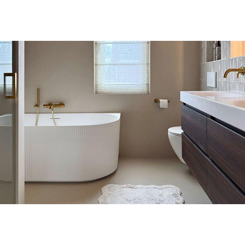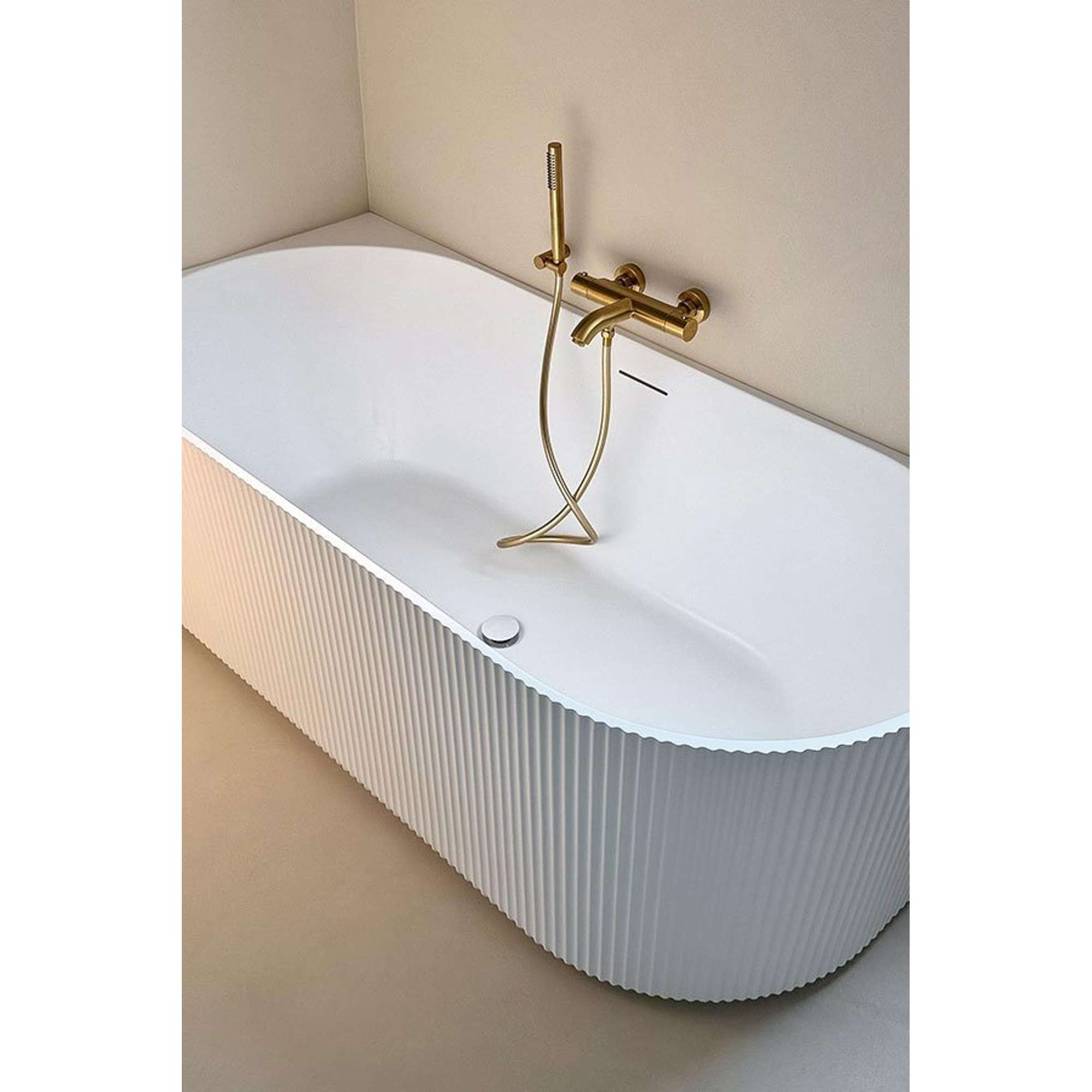 Grâce à sa forme ovale et sa finition mate, cette baignoire apporte une touche moderne à ta salle de bain. Son motif nervuré ajoute du caractère à son esthétique tout en s’intégrant parfaitement dans un coin. L’évacuation est idéalement placée au centre pour un drainage optimal.