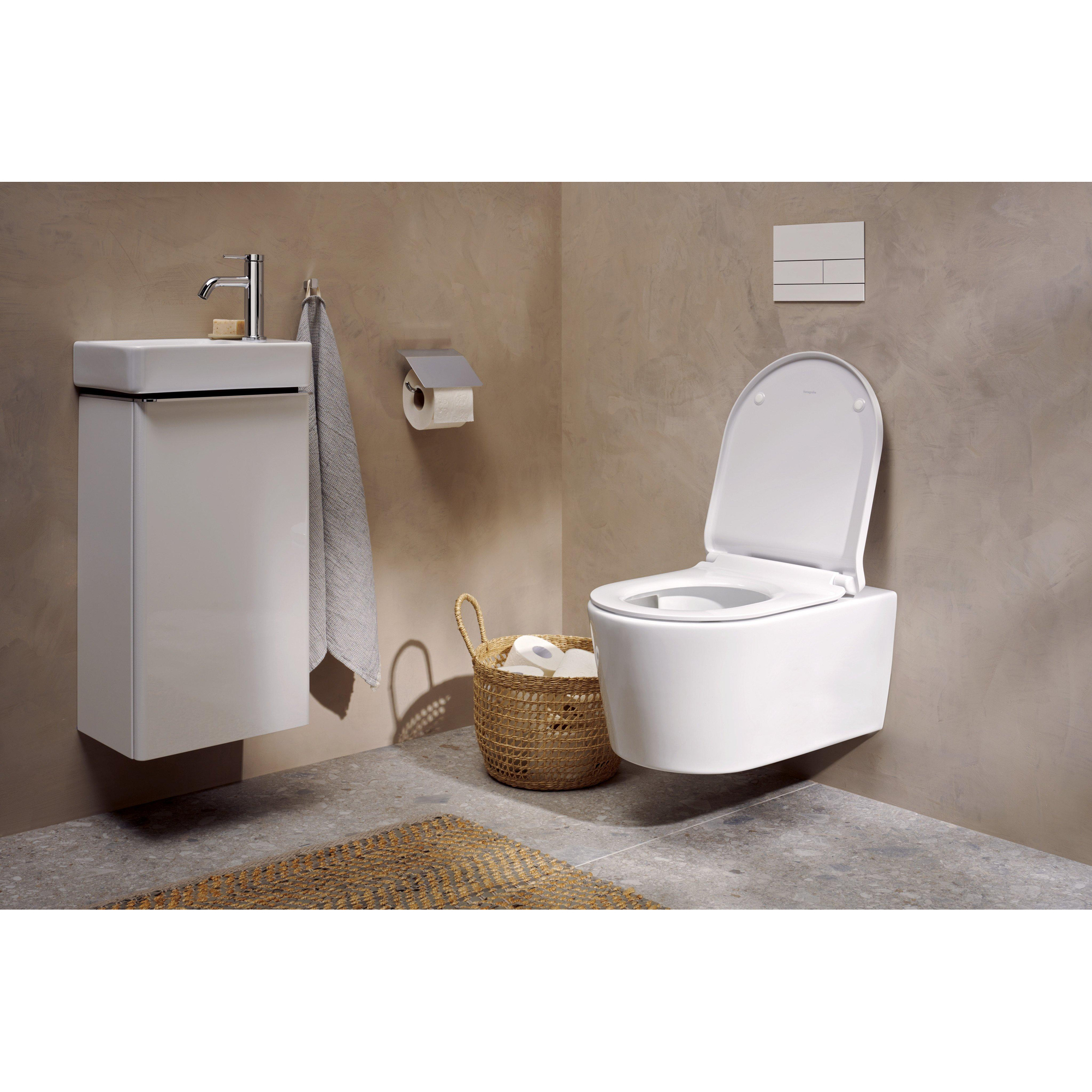 Ce WC est un exemple de design intemporel et d'élégance moderne. La céramique blanche brillante et le modèle suspendu épuré donnent à votre salle de bains une apparence fraîche et ouverte. Grâce à la fixation cachée et au design sans rebord, l'ensemble reste minimaliste et sans couture, ce qui contribue à une atmosphère calme. Vous ajoutez ainsi un élément stylé qui s'intègre facilement à différents styles de salle de bains, du classique au contemporain.