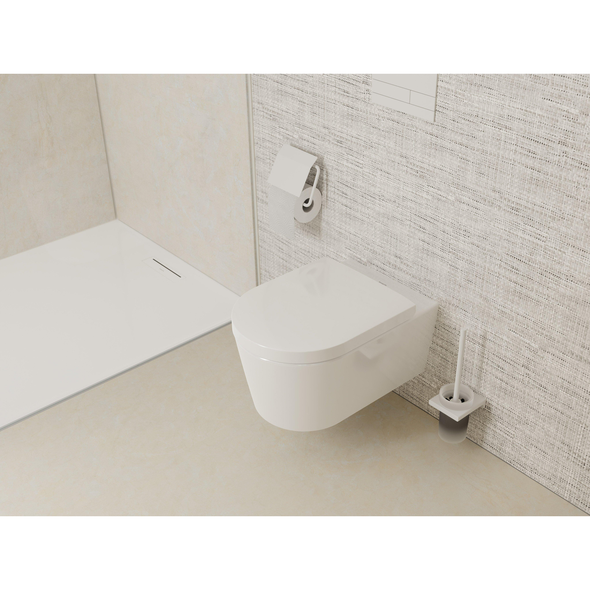 Avec sa finition en céramique brillante et ses lignes épurées, ce WC suspendu est un véritable point focal. Le design minimaliste sans rebord (rimless) offre non seulement une apparence moderne, mais facilite également le nettoyage des toilettes. Les fixations cachées contribuent à un look sans couture, permettant au WC de s'intégrer parfaitement à tout style de salle de bains. Vous ajoutez ainsi un élément intemporel et élégant qui conserve sa beauté pendant des années.