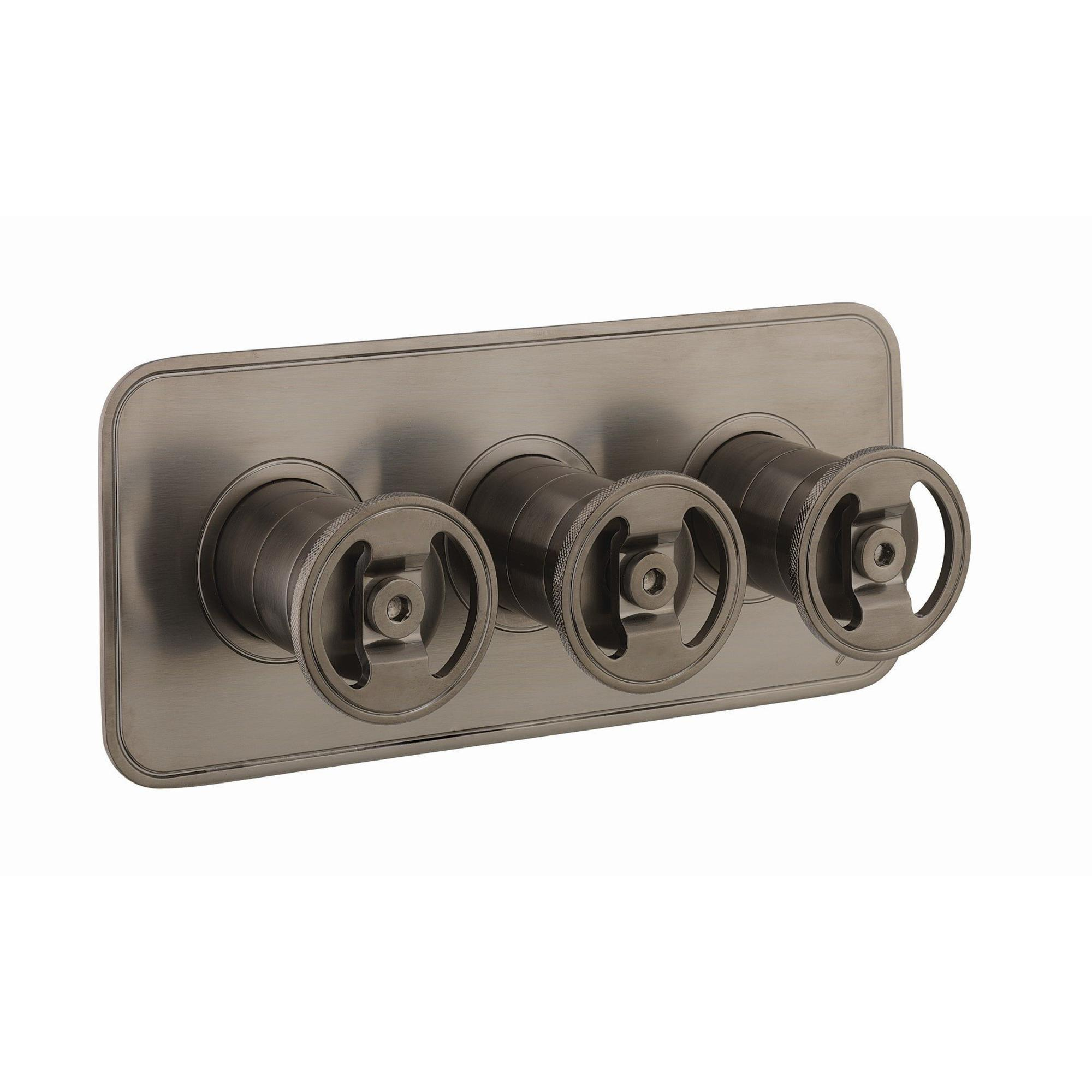 Crosswater Union Mitigeur de douche - 3 poignées en croix - avec partie encastrée - horizontal - chrome noir brossé