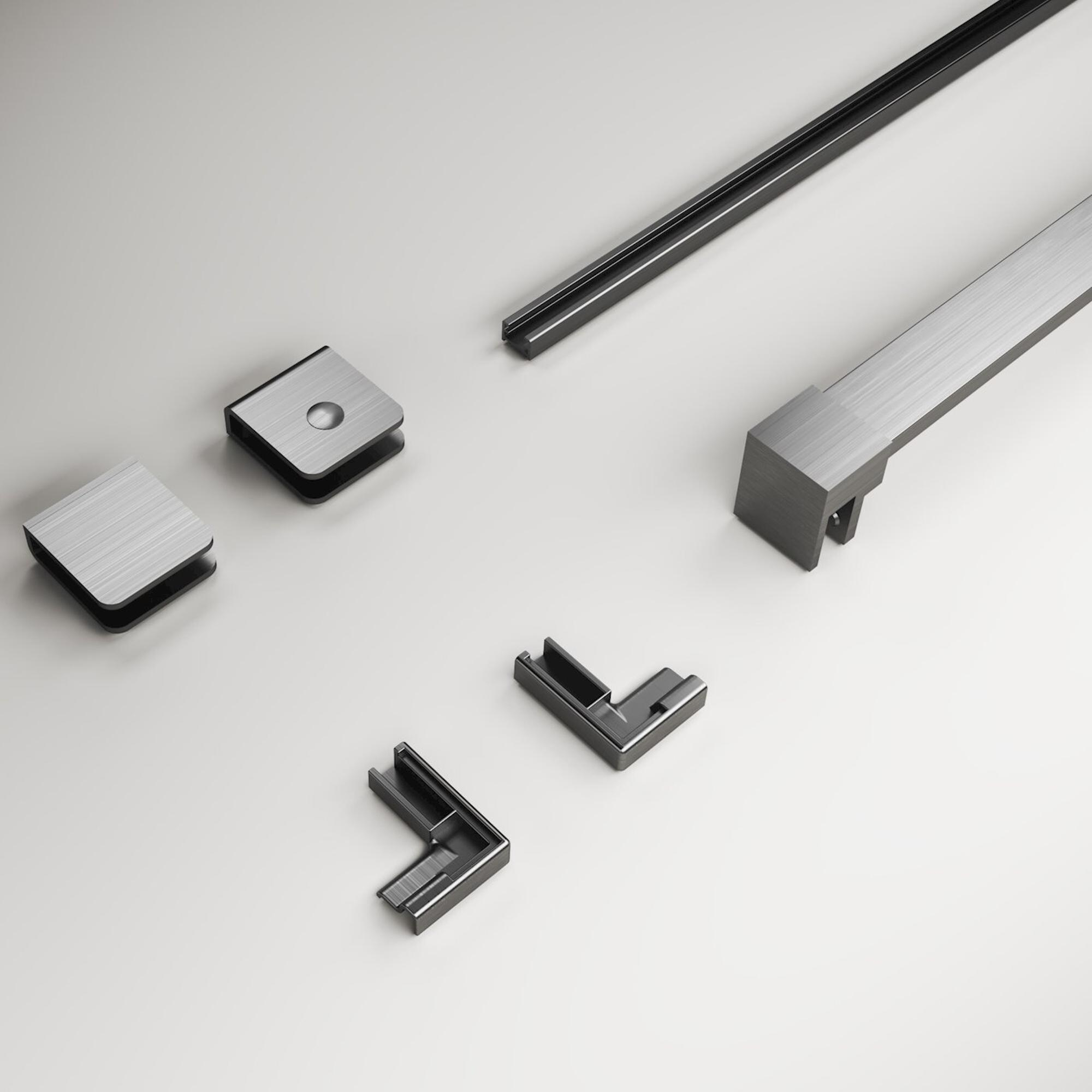 Avec ce kit de montage, vous créez une fixation épurée et solide de votre paroi latérale de douche dans une salle de bains moderne. Grâce à la couleur gunmetal légèrement brossée, l’ensemble s’intègre parfaitement dans les salles de bains industrielles et les intérieurs contemporains, mais trouve également parfaitement sa place dans un style minimaliste ou hôtel chic. Le profil permet de placer facilement une paroi latérale de manière soignée, par exemple comme prolongement d’une douche à l’italienne ou en combinaison avec une porte de douche dans une niche. Idéal si vous souhaitez une finition épurée sans détails gênants, tout en attachant de l’importance à une construction robuste qui supporte sans effort une utilisation quotidienne. Ce set est donc un choix judicieux aussi bien pour les projets de rénovation que pour les constructions neuves, pour tous ceux qui souhaitent longtemps profiter d’un espace de douche soigné et élégant.