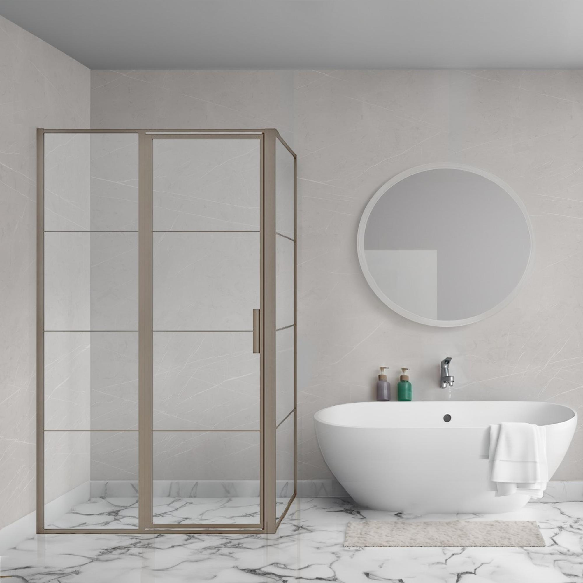 - Verre clair qui agrandit optiquement votre salle de bains et met joliment en valeur votre carrelage.