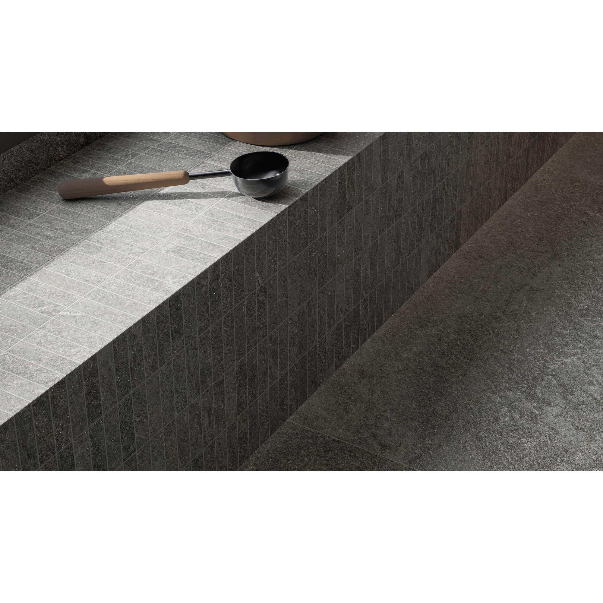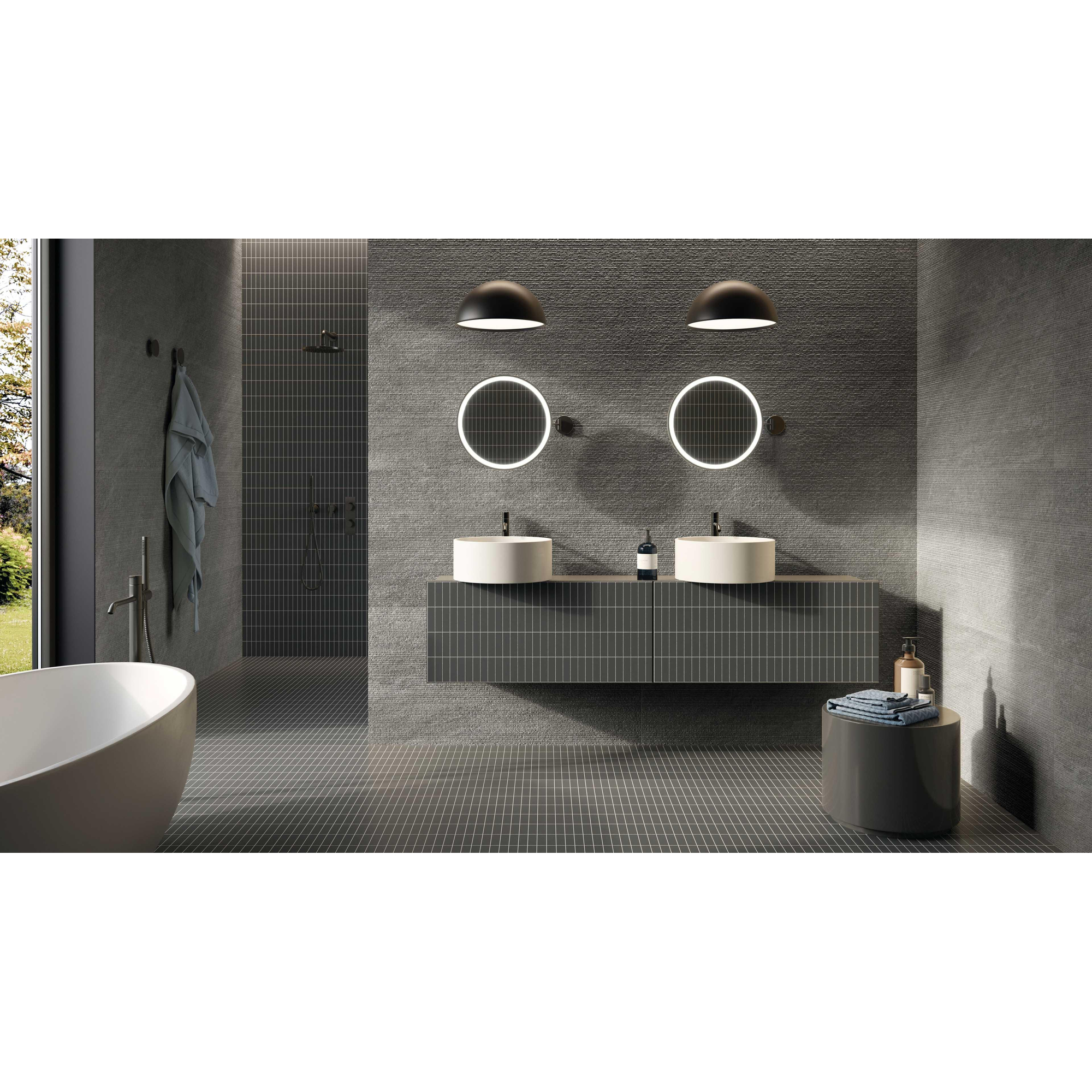 La série Origins est connue pour son interprétation fidèle du quartzite : nuances de couleurs subtiles, fins veinages et dessin vivant mais non chargé. Dans la couleur sombre, il se crée une ambiance élégante, presque hôtelière, dans laquelle les éléments sanitaires et les meubles sont parfaitement mis en valeur. Le format 60x60 cm est un véritable classique : suffisamment grand pour un effet d’espace, suffisamment compact pour rester pratique à poser également dans les salles de bains et les toilettes. Comme le carrelage peut être utilisé aussi bien comme carrelage de sol que de mur, vous pouvez facilement créer une base harmonieuse dans toute la pièce, avec par exemple un sol continu et un mur d’accent derrière la baignoire ou dans la douche.