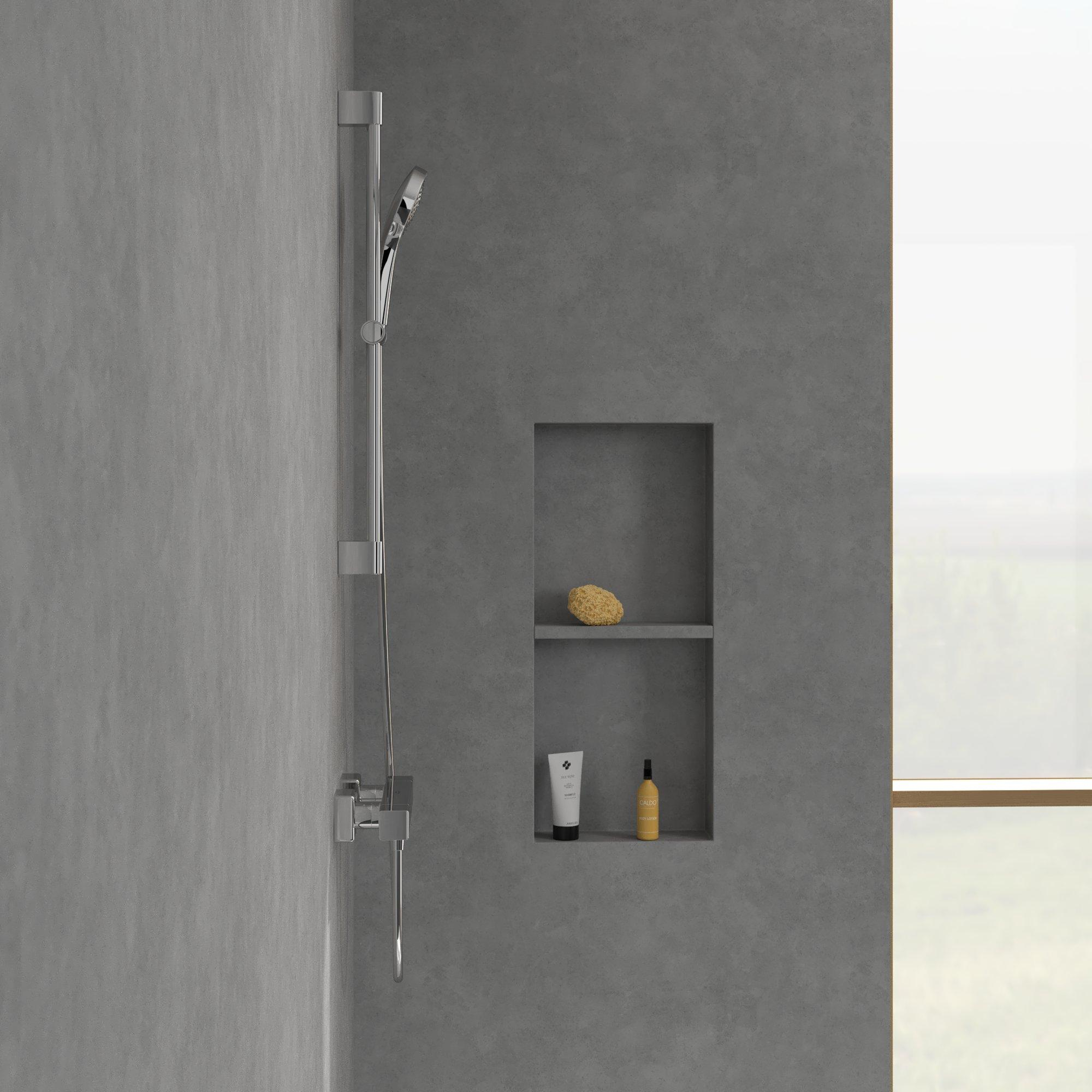 La silhouette angulaire et la finition chromée soigneusement polie donnent immédiatement à votre douche une apparence moderne et haut de gamme. Les lignes épurées s'accordent parfaitement avec des receveurs de douche rectangulaires, des parois de douche en verre et des ensembles de douche minimalistes. Grâce à sa forme universelle, ce robinet apparent convient parfaitement aussi bien à une petite salle de bains urbaine qu'à une douche à l'italienne spacieuse. La couche de chrome brillant reflète subtilement la lumière, ce qui donne à votre espace de douche une impression de volume. Combinez le robinet avec des accessoires chromés assortis et vous créez un ensemble harmonieux qui semble avoir été conçu par un architecte d'intérieur.