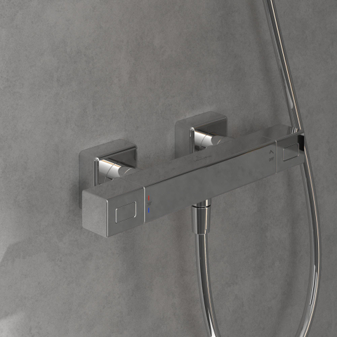 Vous recherchez un mitigeur de douche élégant et fiable qui offre chaque jour exactement la bonne température ? Ce mitigeur thermostatique apparent au design angulaire en chrome brillant est idéal pour ceux qui aiment une salle de bains moderne et minimaliste ou un espace de douche intemporel avec une finition haut de gamme. Grâce au réglage sécurisé de la température et à la pression d'eau constante, c'est un choix judicieux pour les familles avec enfants, pour les foyers occupés où plusieurs personnes se douchent à la suite et pour tous ceux qui souhaitent simplement profiter sans réfléchir d'une douche stable et confortable. Grâce au design universel et rectiligne, vous combinez sans effort ce robinet avec différents types de ensembles de douche et de styles de salle de bains, du style moderne épuré au style hôtel chic.