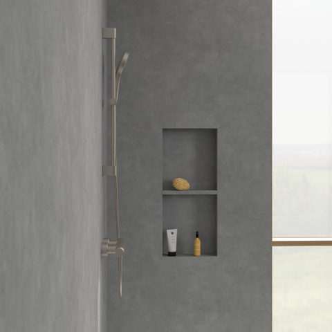 Le mitigeur thermostatique est réalisé en nickel brossé mat, ce qui lui confère une apparence luxueuse et intemporelle. Avec un entraxe de 150 mm et un format compact, il s'intègre parfaitement dans divers environnements de salle de bain. La surface brillante avec revêtement protège contre l'usure et facilite le nettoyage.